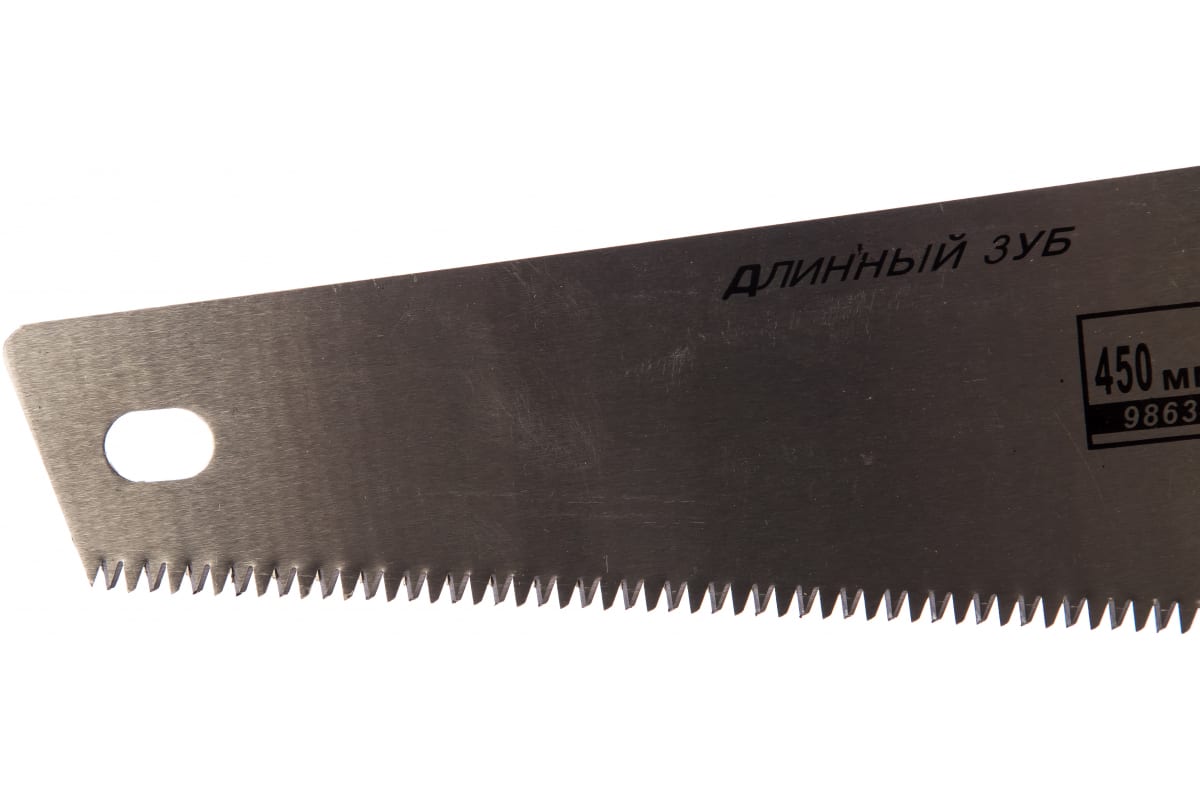 Преимущества ножовки Энкор 9863- Полотно ножовки произведено из стали 65 Mn - для высокой прочности;
