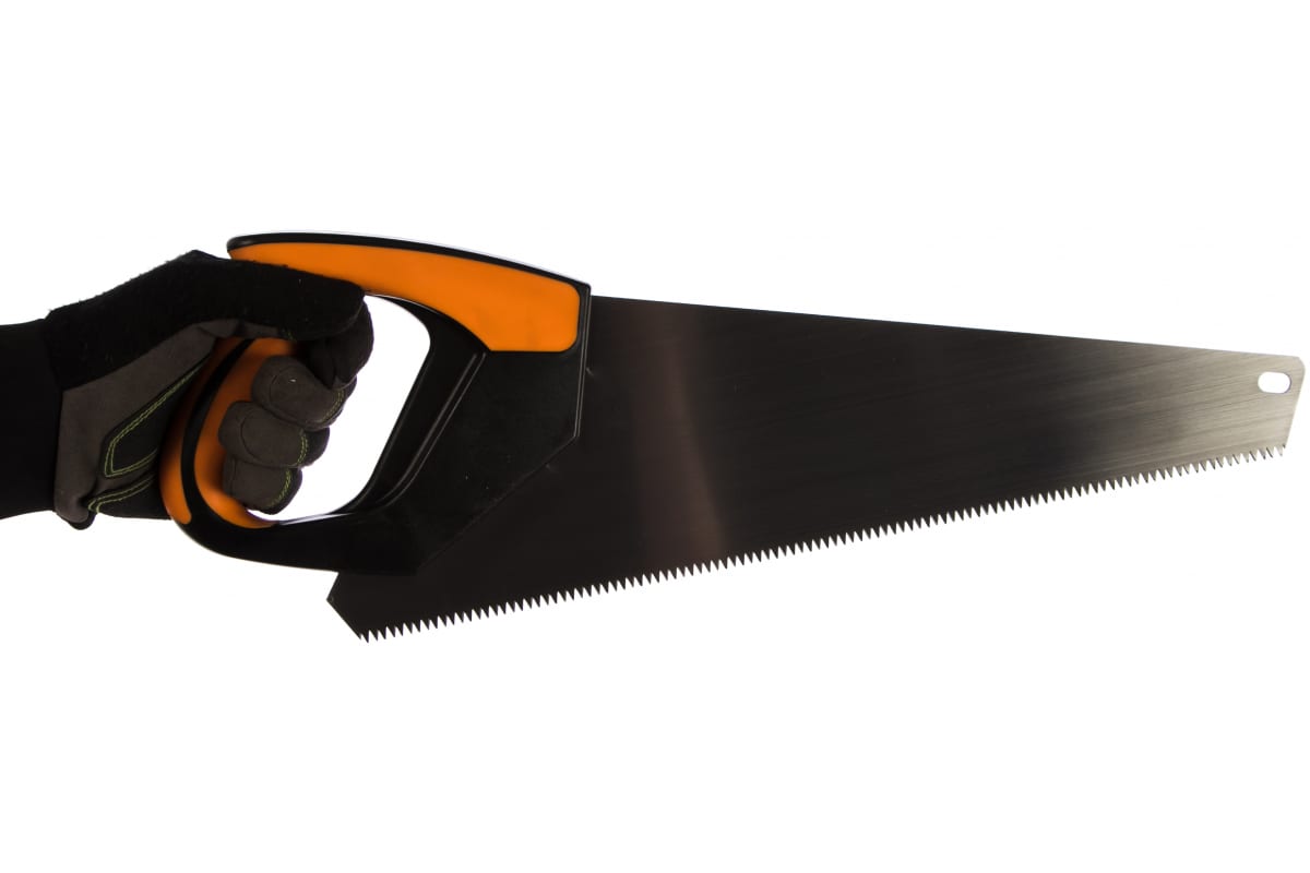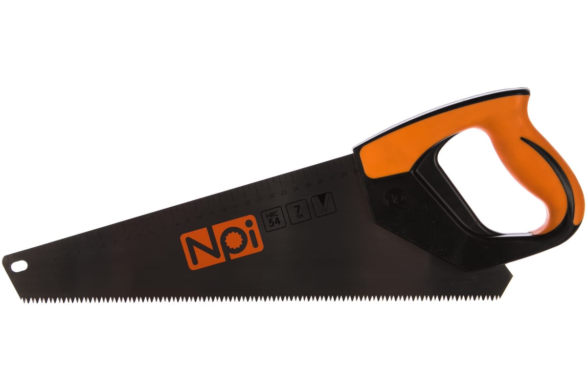 Ножовка по дереву 400мм 7TPI NPI 52400 - удобный инструмент для быстрого и ровного распила. На обратной стороне полотна расположена линейка с шагом 0.5 см. Можно отмерять углы 45 и 90 градусов.