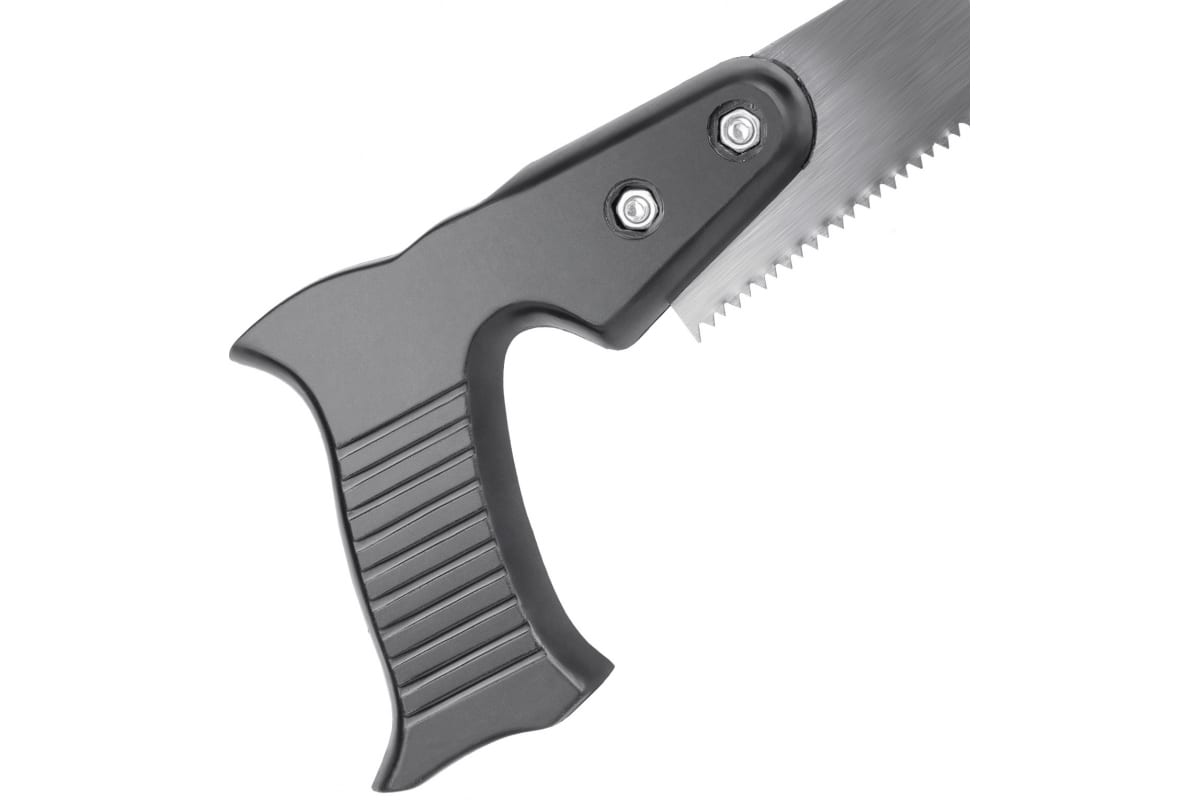 Рукоятка инструмента выполнена из ударопрочной пластмассы, что обеспечивает долговечность и надежностью. Эргономичная форма гарантирует комфортное пиление.