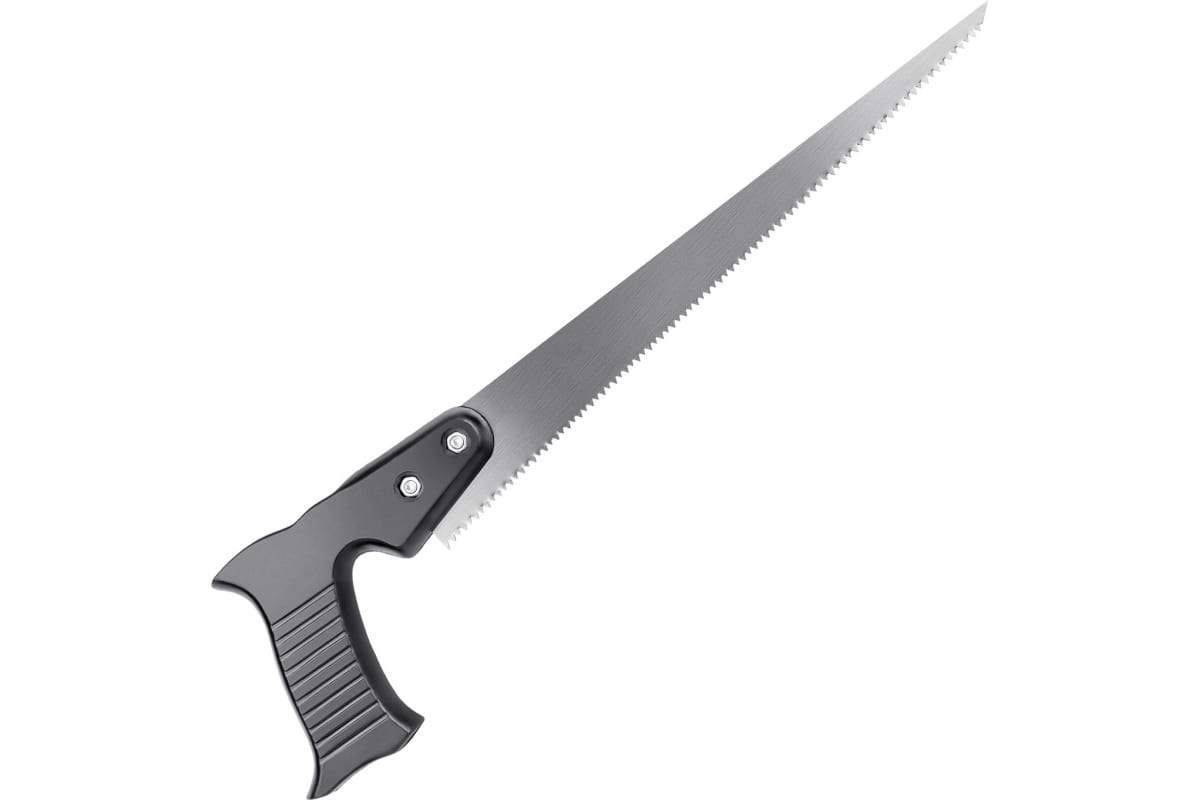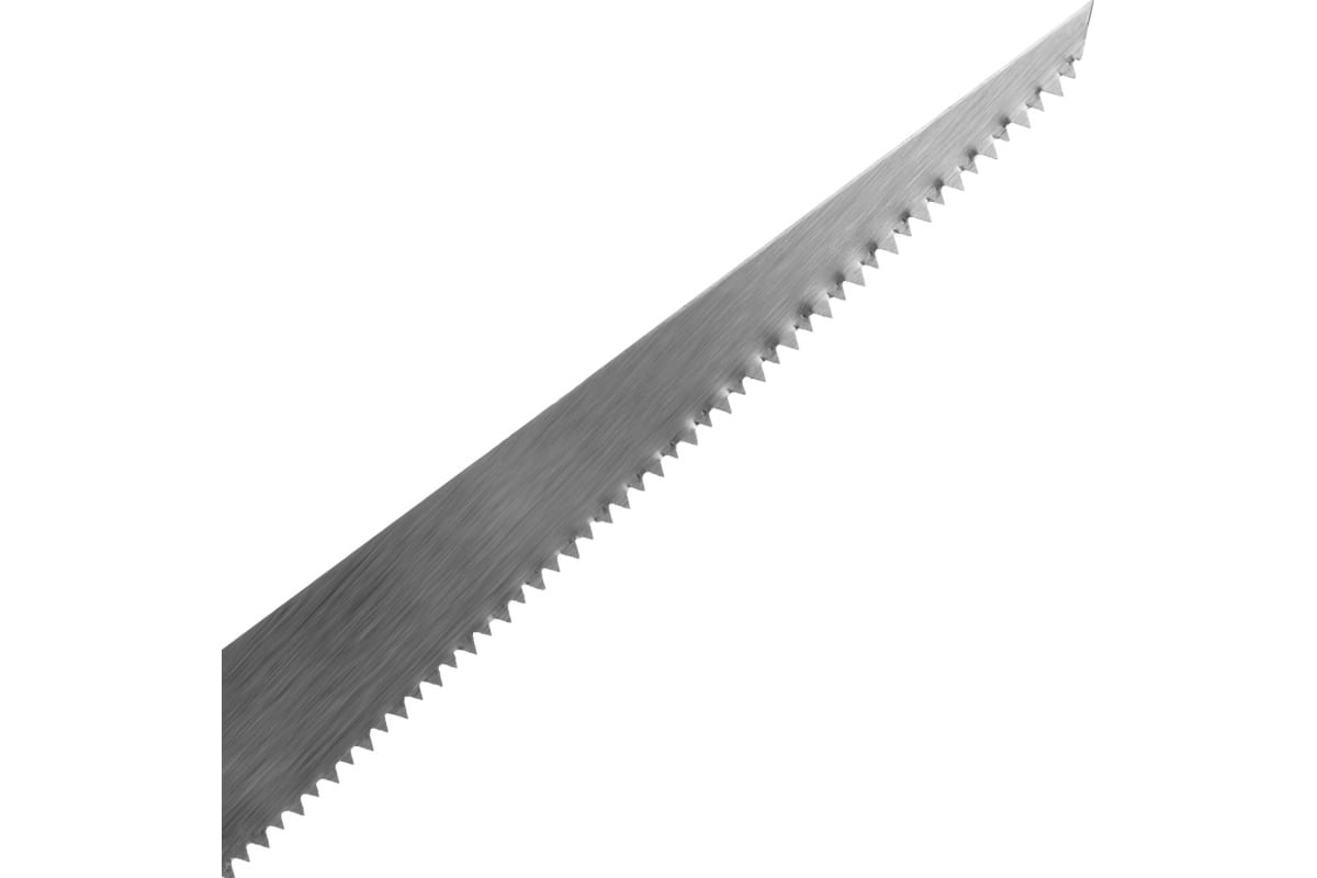 Полотно изготовлено из высококачественной инструментальной стали высокой прочности. Универсальные зубья остро заточены с двух сторон, закалка сохраняет заточку зубьев длительное время и увеличивает срок службы ножовки.