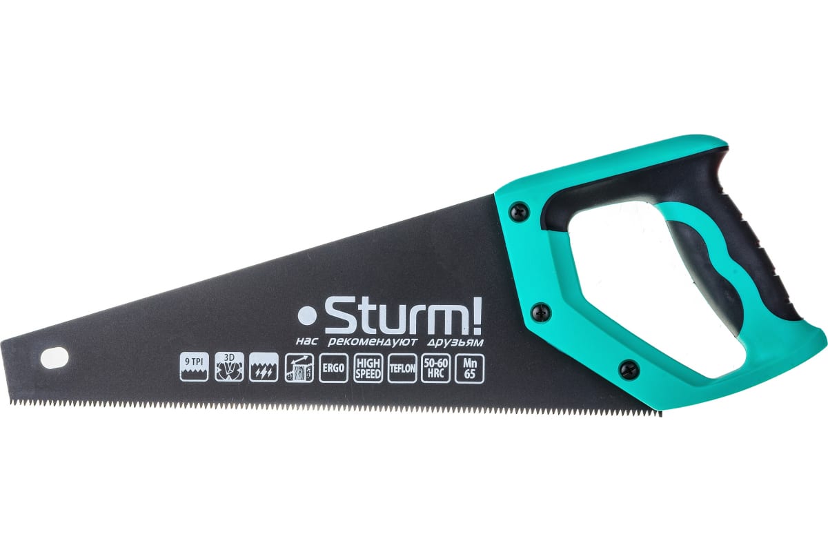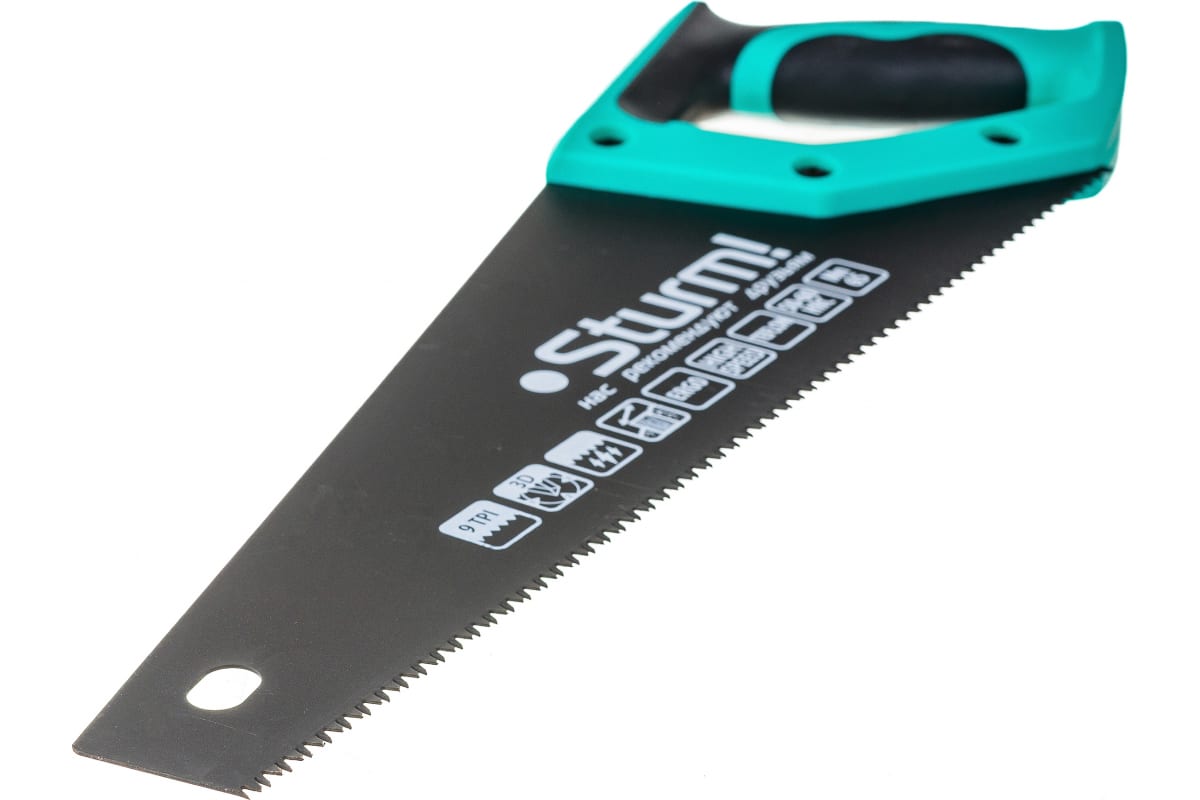Ножовка по дереву Sturm 1060-64-350 - надежный и качественный инструмент с тефлоновым покрытием, которое обеспечивает защиту от прилипания опилок с мокрой заготовки.