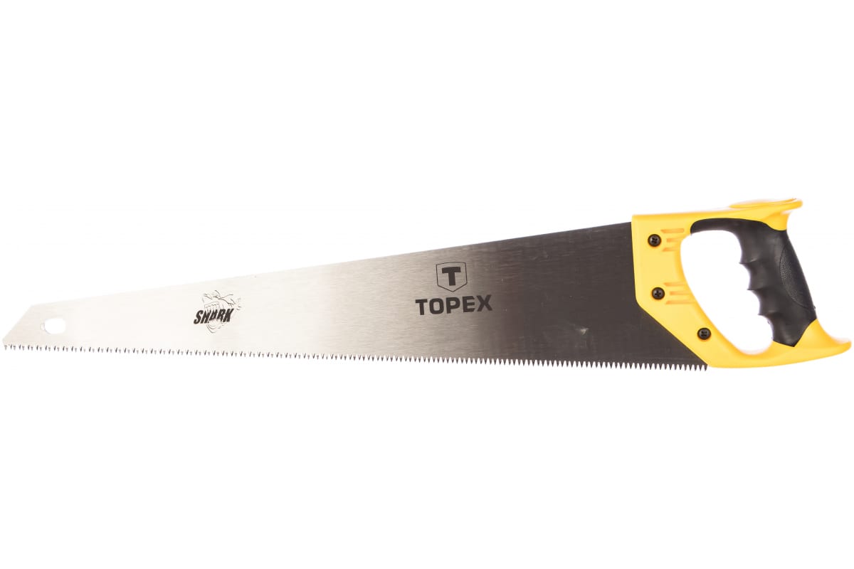 Ножовка по дереву TOPEX Shark 560мм 10A453 используется для распиливания досок, деревянных заготовок, бревен, а также для спиливания веток. Шаг 7 зубьев на дюйм позволяет выполнять работу более эффективно. Трехсторонняя заточка и закалка облегчают распиловку. Рукоятка выполнена из нескользящего двухкомпонентного пластика, что делает работу удобной и безопасной.