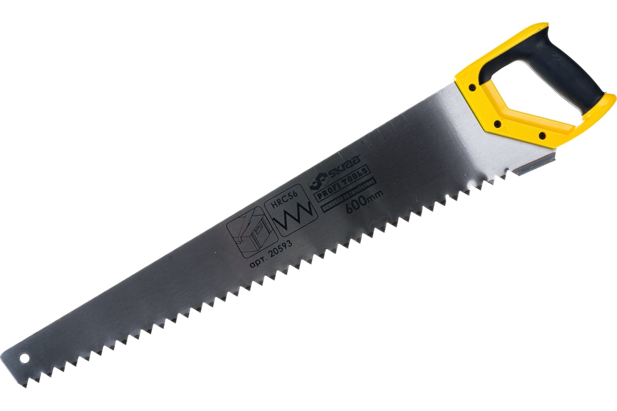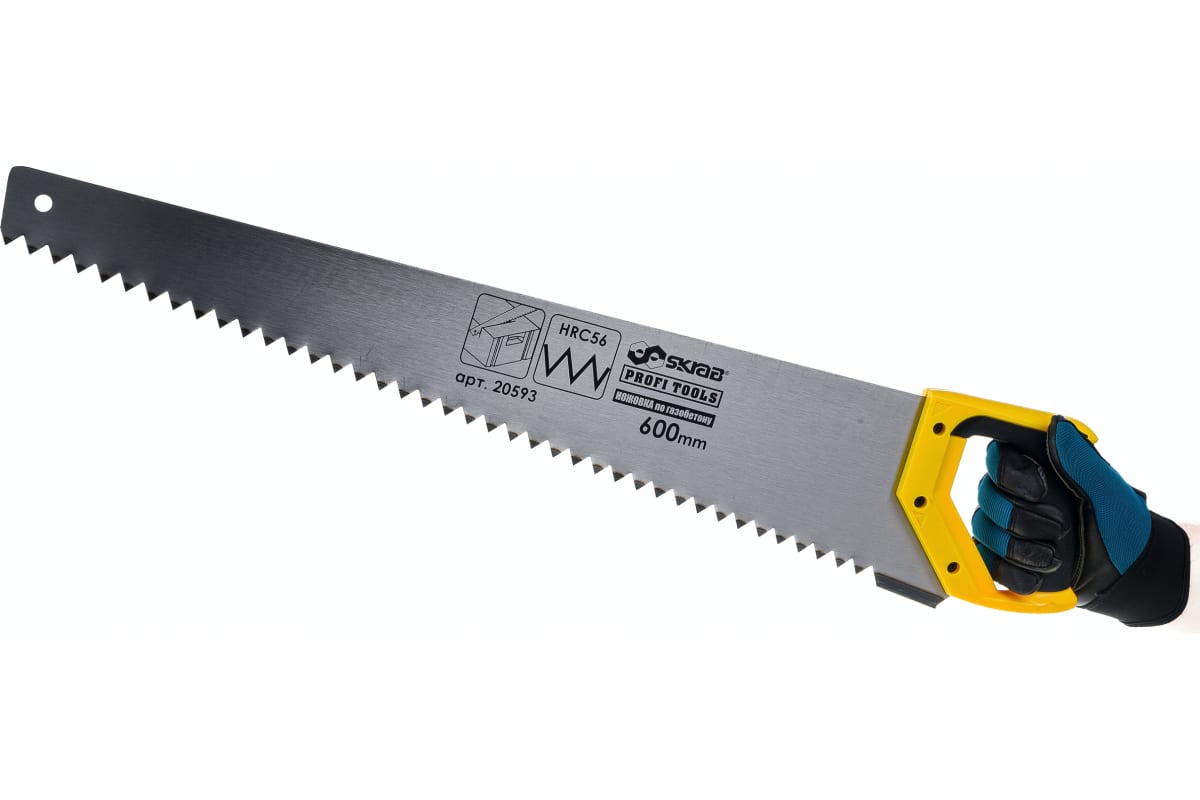 Ножовка по газобетону SKRAB 600мм Hard 20593 предназначена для распиливания блоков ячеистого бетона. Зубья выполнены из прочного металла.