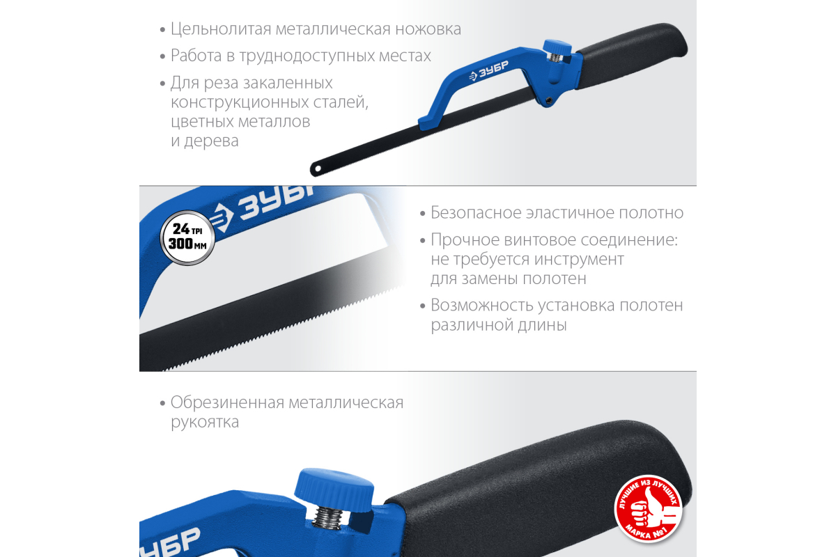 Ножовка-ручка по металлу ЗУБР 1572_z03 подходит для работы в труднодоступных местах.