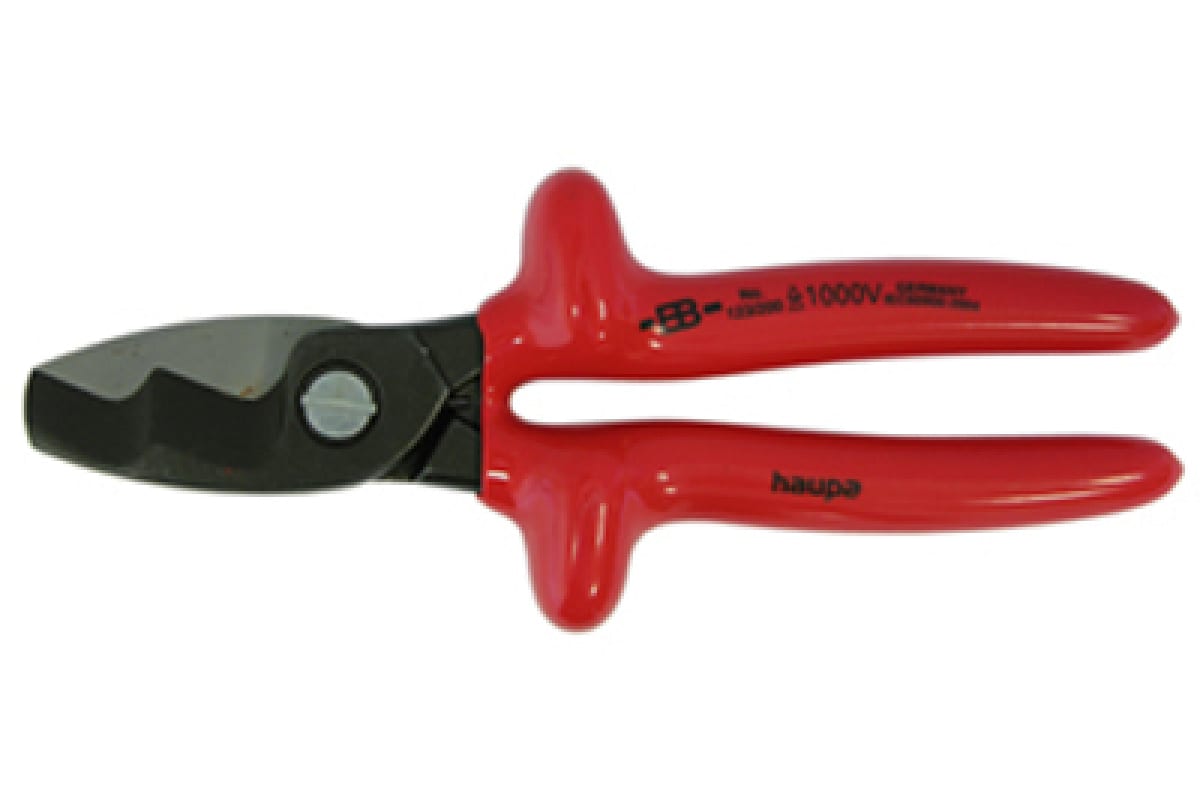 Обоюдоострые ножницы для резания кабеля VDE макс.20мм HAUPA 200128 легко управляются одной рукой. Защищают пользователя от удара электрическим током.