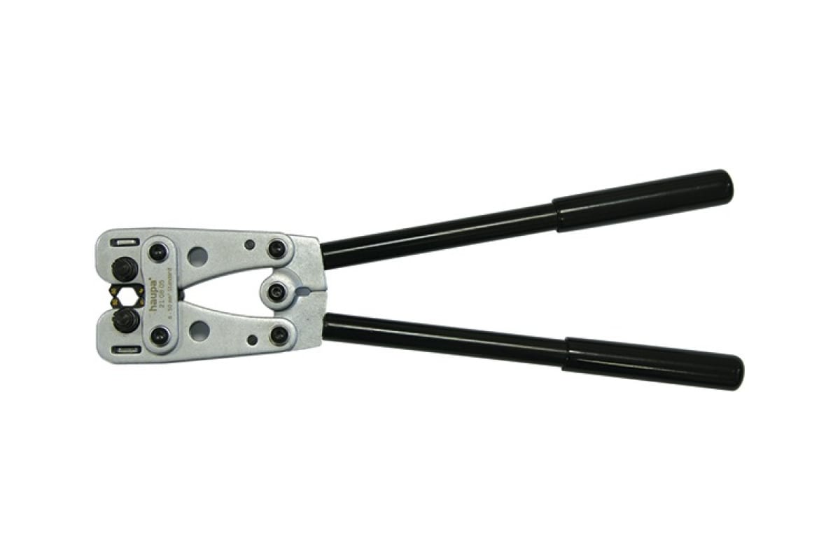 Обжимной инструмент, стандартная шестигранная прессовка 6-50мм2 HAUPA 210805 оснащен встроенным поворотным диском с шестигранным профилем. Обеспечивает прочный и качественный обжим наконечников и гильз.
