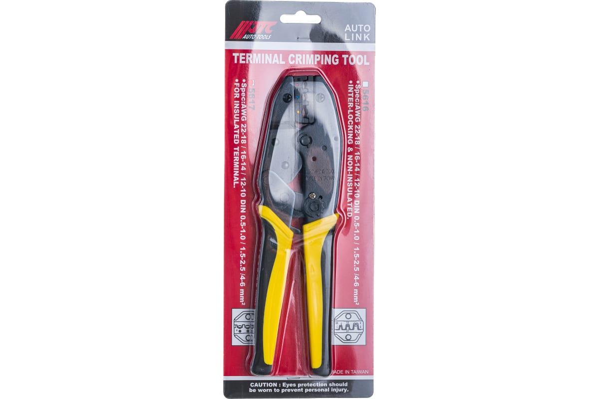 Преимущества клещей JTC JTC-5617- Сечение обжимаемых проводов по стандарту AWG: 22-18/16-14/12-10 мм;