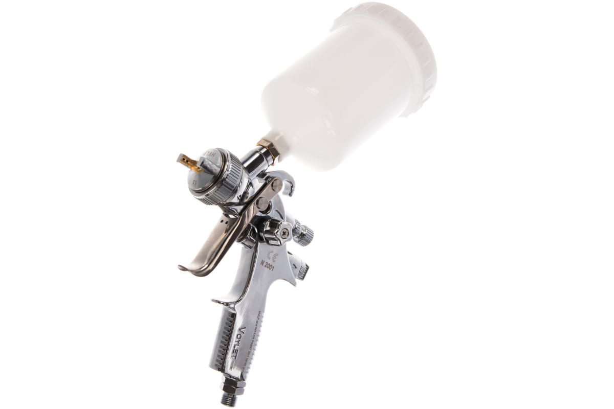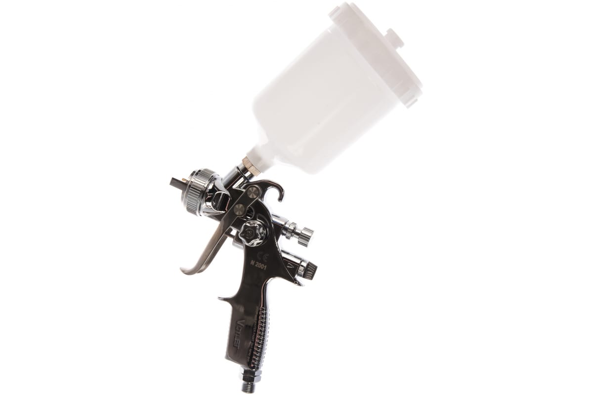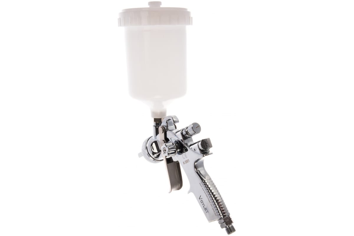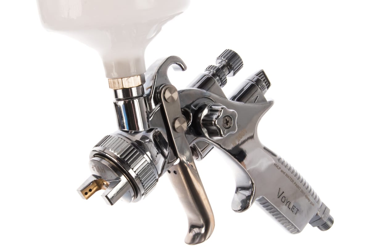 Окрасочный краскопульт Voylet N-2001 1.3 мм 005-00002 надежен в эксплуатации. Применяется для нанесения базовых эмалей и финишных покрытий, лаков.