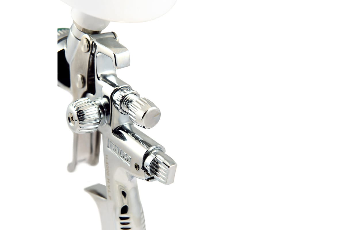 Регулировки факела, расхода материала и потока воздуха позволяют настроить пистолет на конкретную задачу.