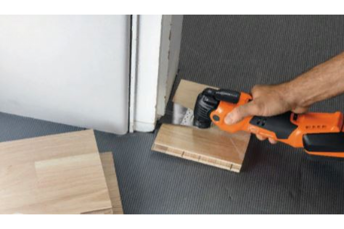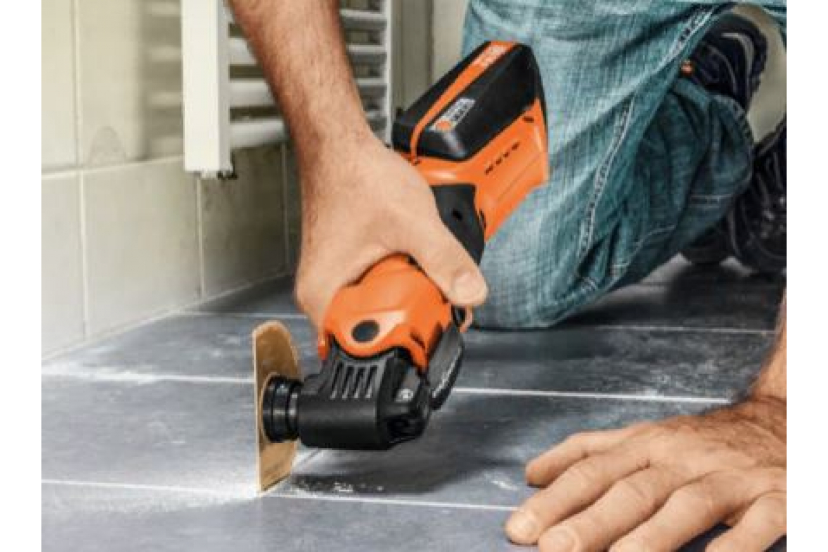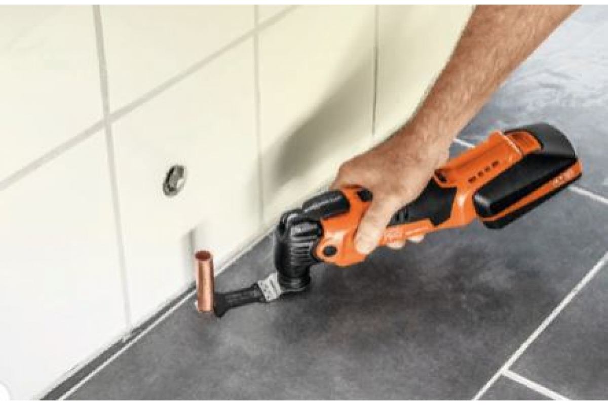 Осциллирующий инструмент на аккумуляторах Fein MultiMaster AFMM 18 QSL Select 71292262000 используется в строительных и ремонтных работах.