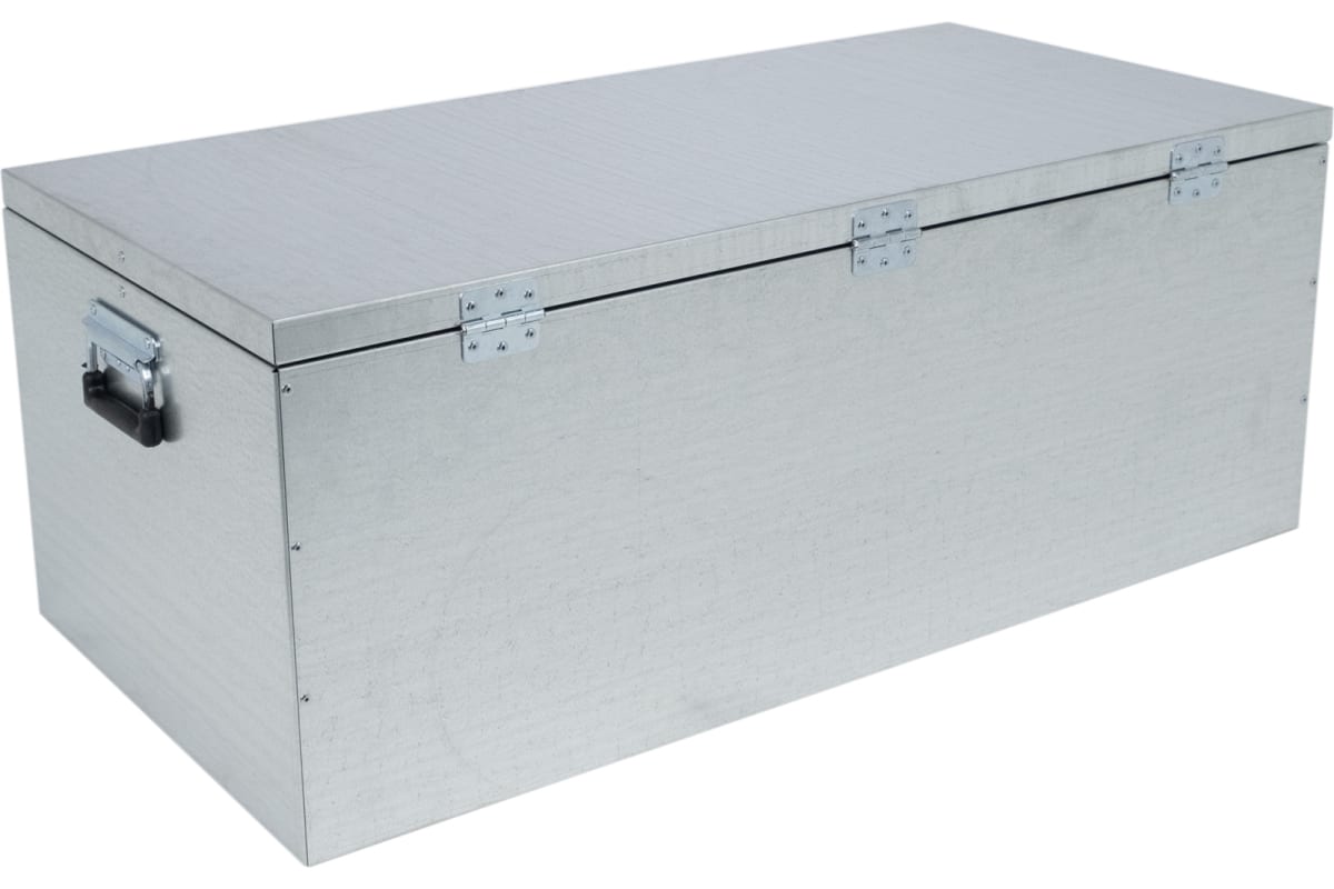 Оцинкованный ящик Олимп 950х450х380_10_Z 954538_10_Z служит для хранения ручного инструмента, а также его перевозки. Для удобства транспортировки предусматривается 2 рукояти по бокам корпуса.