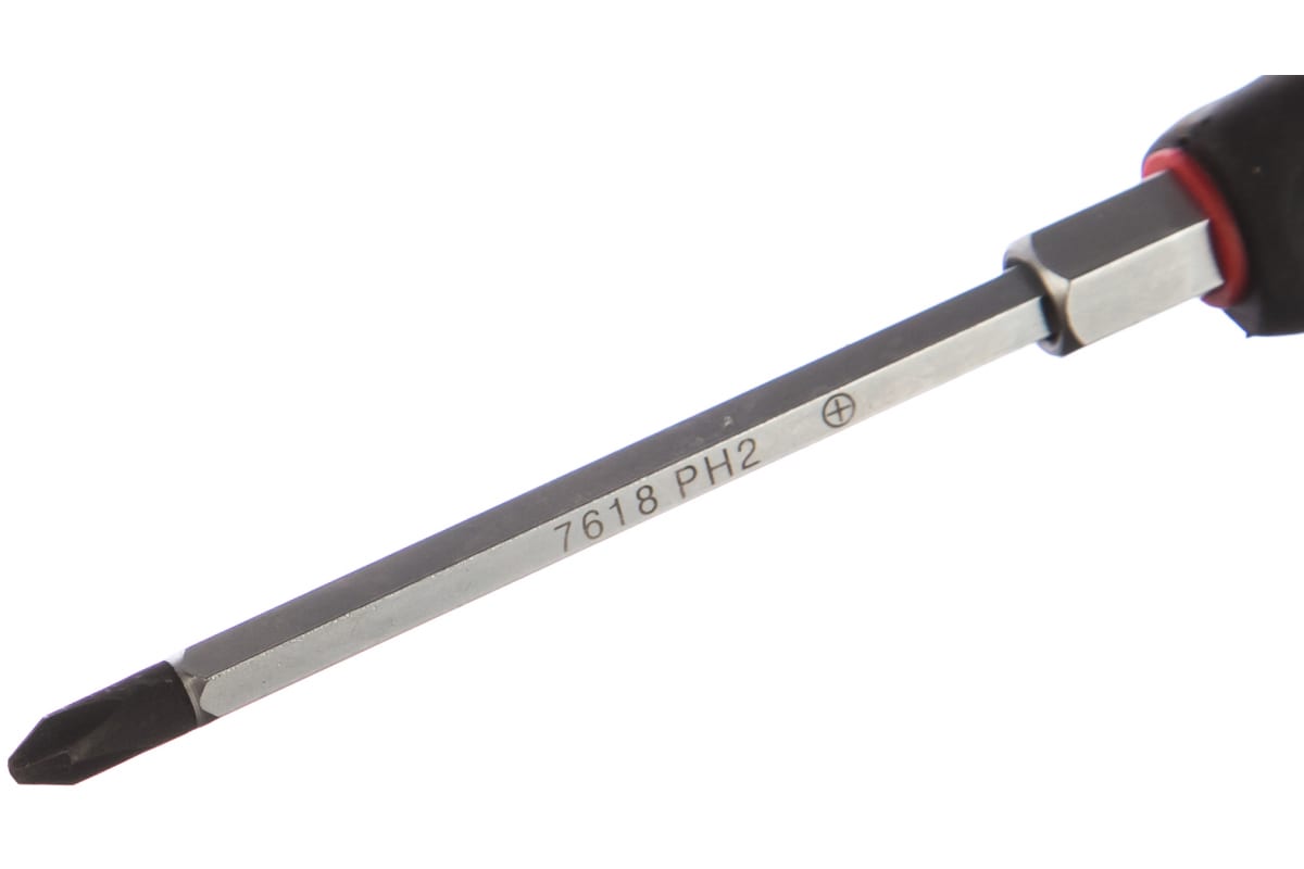 Отвертка, крестовая PH2 х 100мм усиленная со сквозным стержнем JTC 7618 удобна при работе со сложным крепежом.