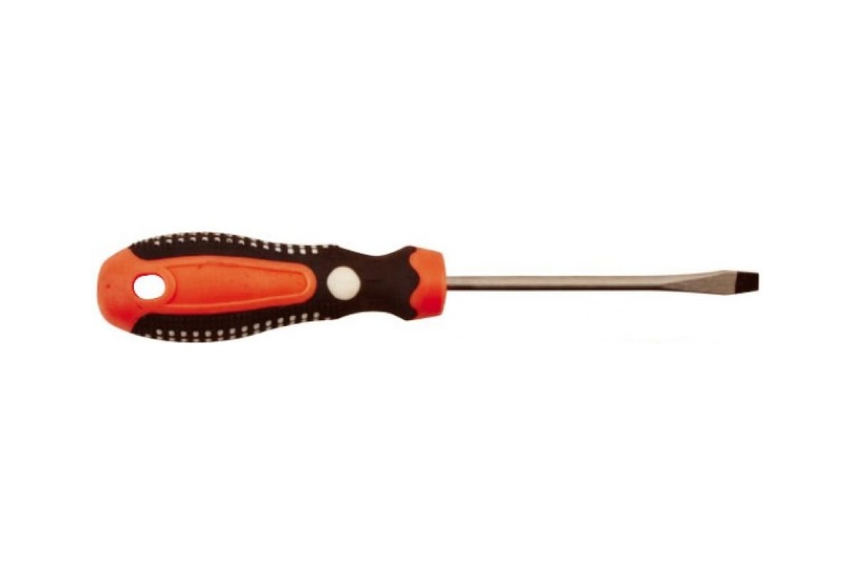 Отвертка КУРС Тренд SL 3х75 мм 53766 применяется для закручивания и откручивания резьбовых крепежей плоского профиля. Ее стержень сделан из хромованадиевой стали, что обеспечивает повышенную прочностью. Наконечник отвертки намагничен, благодаря чему легче работать с мелкими крепежными элементами. Двухкомпонентная рукоятка не скользит в руке, способствуя надежному захвату.