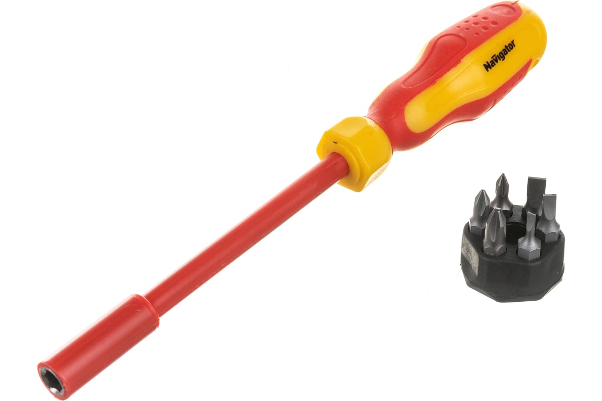 Отвертка Navigator NHT-Оtd02-H6 сменные биты, 6 шт. 80285 предназначена для работы в электрических сетях и силовых токопроводящих точках, находящихся под напряжением до 1000 В. Ударопрочная эргономичная рукоятка-держатель и набор из шести бит обеспечивают комфортную работу с самым распространенным крепежом. Надежный держатель для бит обеспечивает удобную работу.