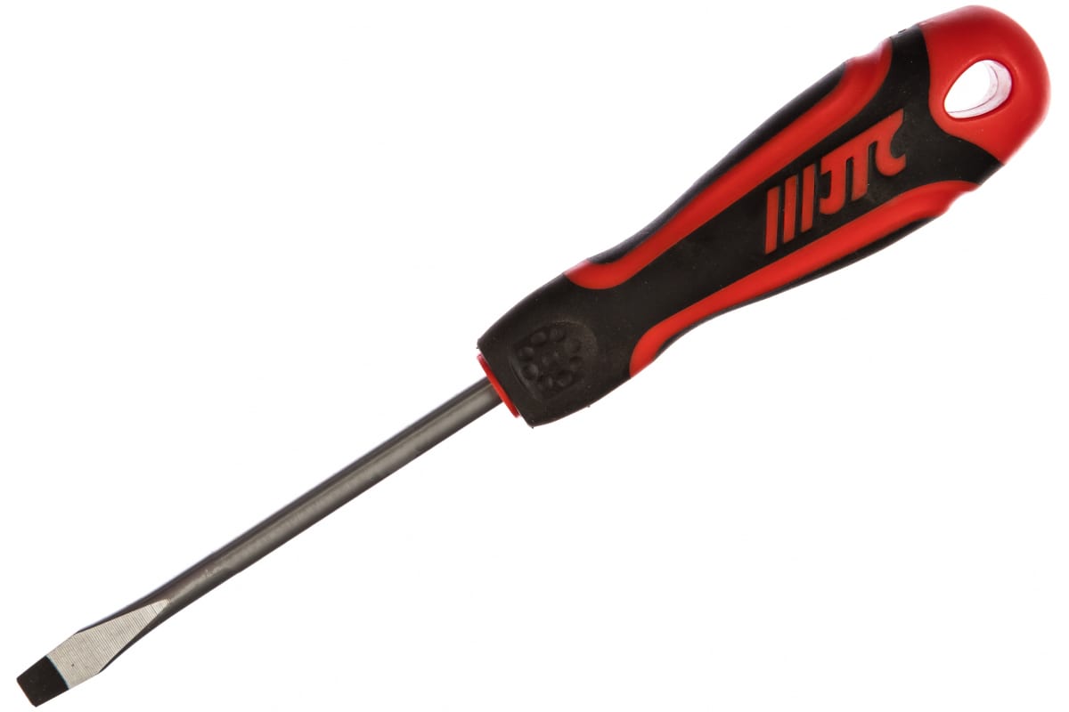 Отвертка, шлицевая SL6.5 x 100мм усиленная JTC 7609 обеспечивает монтаж и демонтаж различных конструкций с винтовыми креплениями. Усиленный стержень имеет шестигранный профиль.
