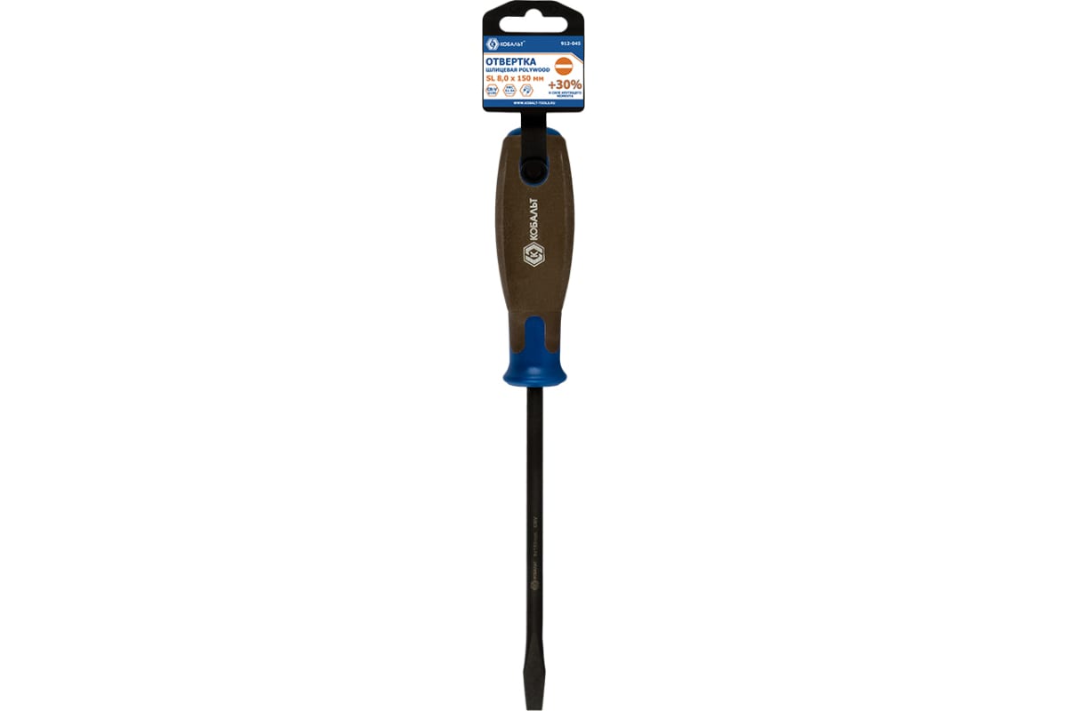 Отвертка SL 8,0 х 150 мм CR-V КОБАЛЬТ POLYWOOD 912-045 - качественный и надежный инструмент, который обладает широким шлицем для работы с крепежом.