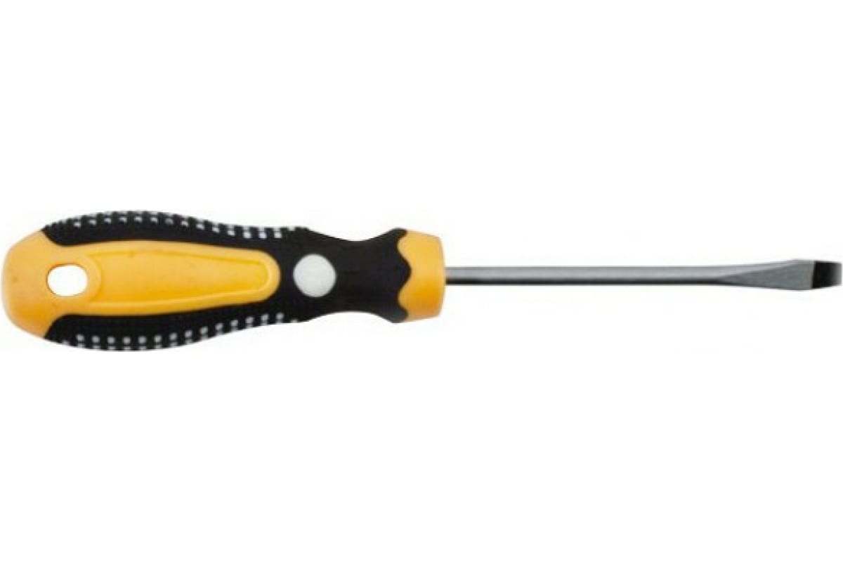 Отвертка Тренд SL 5х100 мм КУРС 53768 - слесарный инструмент, используется для отвинчивания и завинчивания резьбовых крепежей плоского профиля. Стержень из хром-ванадиевой стали обеспечивает прочность во время использования. В отвертку встроен намагниченный наконечник для удержания и фиксации крепежей. Эргономичная рукоятка выполнена из двухкомпонентного материала.