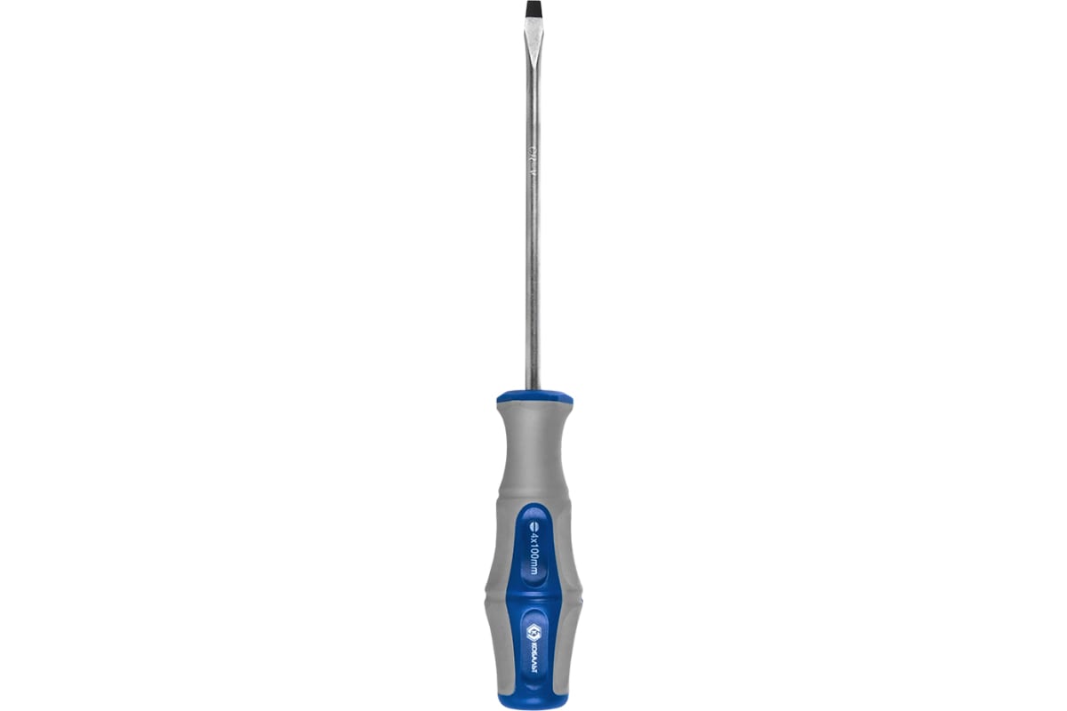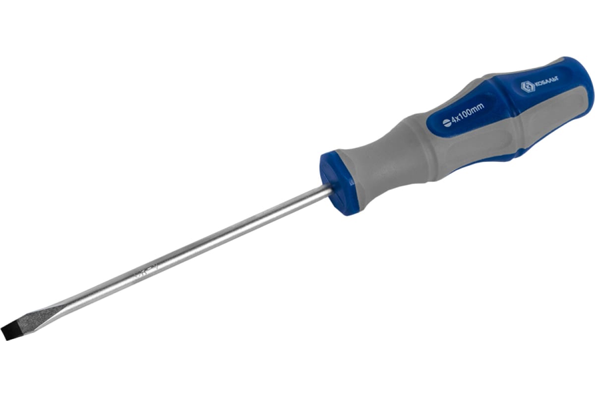 Отвёртка Ultra Grip SL 4 х 100 мм CR-V КОБАЛЬТ 646-249 - ручной инструмент, который используется для работ с соединениями плоского профиля. Рукоятка выполнена из двухкомпонентного материала, который обеспечивает крепкий и удобный захват. Прочный стальной стержень выдерживает нагрузки во время работы. В рабочую часть встроен магнит, за счет этого происходит фиксация крепежа.