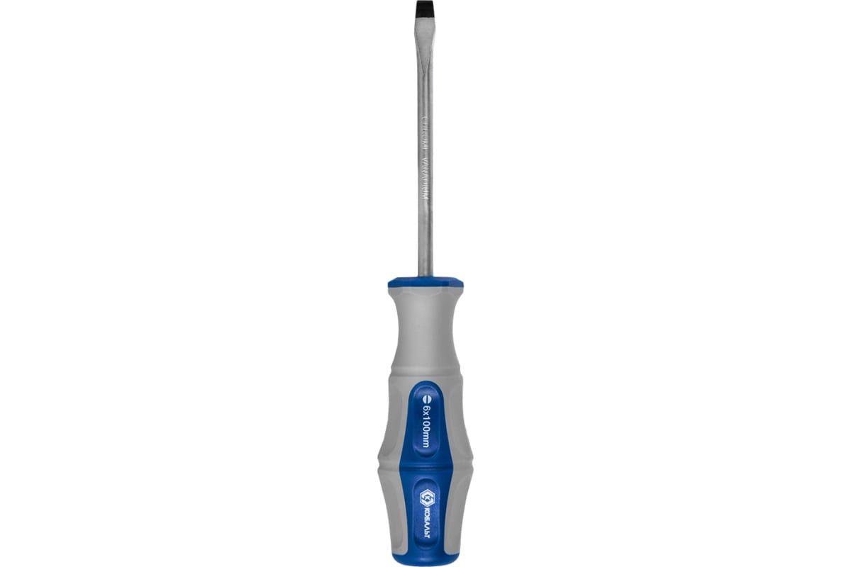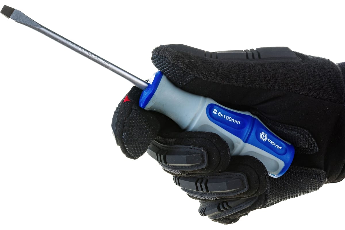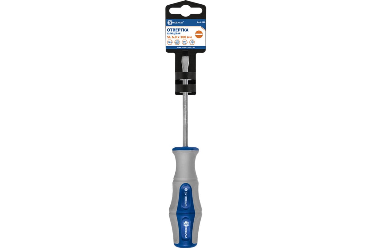 Отвёртка Ultra Grip SL 6 х 100 мм CR-V КОБАЛЬТ 646-270 имеет плоский профиль. Применяется в монтажных или ремонтных работах. Для комфортного использования инструмент оснащен магнитным наконечником, который расположен на стальном стержне. Во время работы изделие выдерживает различные нагрузки, за счет материала и закалки до твердости 51-52 HRC. Рукоятка с изгибами обеспечивает крепкий захват и защищает от соскальзывания руки.