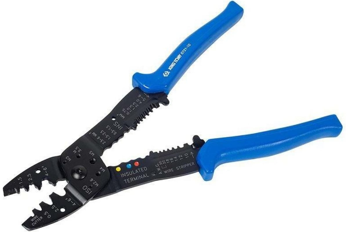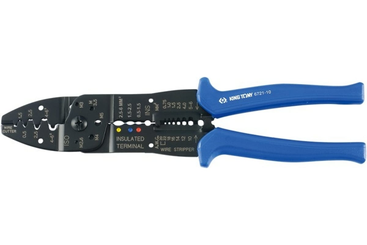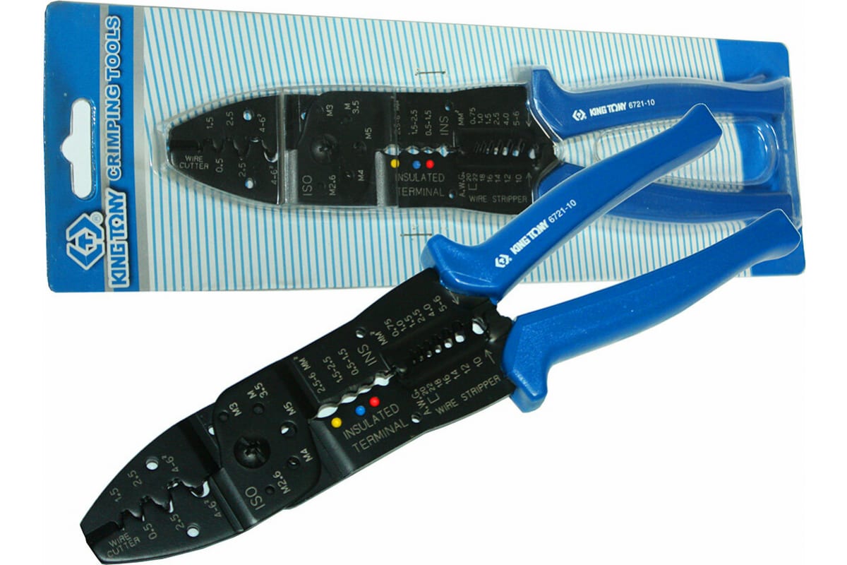 Пассатижи для зачистки изоляции KING TONY 250 мм 6721-10 используются преимущественно профессионалами при проведении электромонтажных работ. Данный инструмент применяется для опрессовки изолированных и неизолированных клемм, а также обрезания мягкой проволоки. Рабочая часть изготовлена из высокопрочного материала. Рукоятки с двухкомпонентным покрытием обладают стойкостью к химическим веществам.