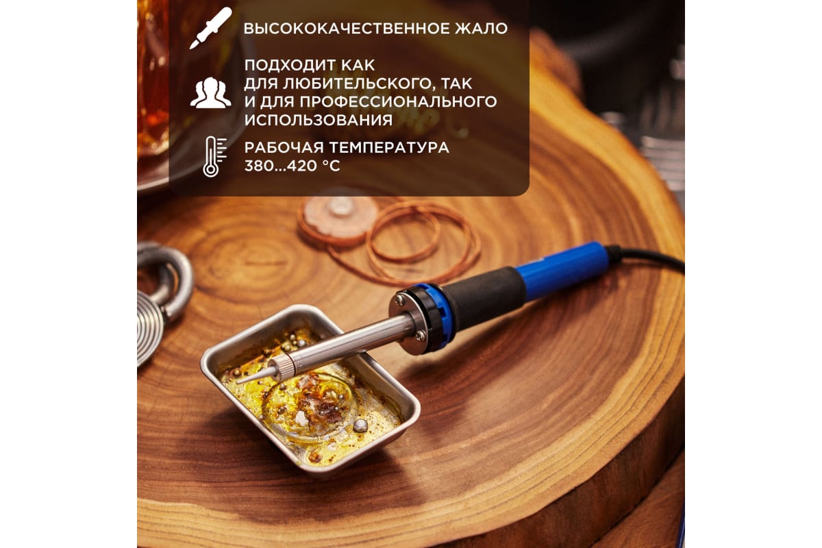 Нагреватель имеет керамическую трубку, которая повысит энергоэффективность прибора. Паяльник оснащен ударопрочной рукояткой из термостойкого пластика с резиновой накладкой, которая сделает работу с инструментом легкой и приятной.