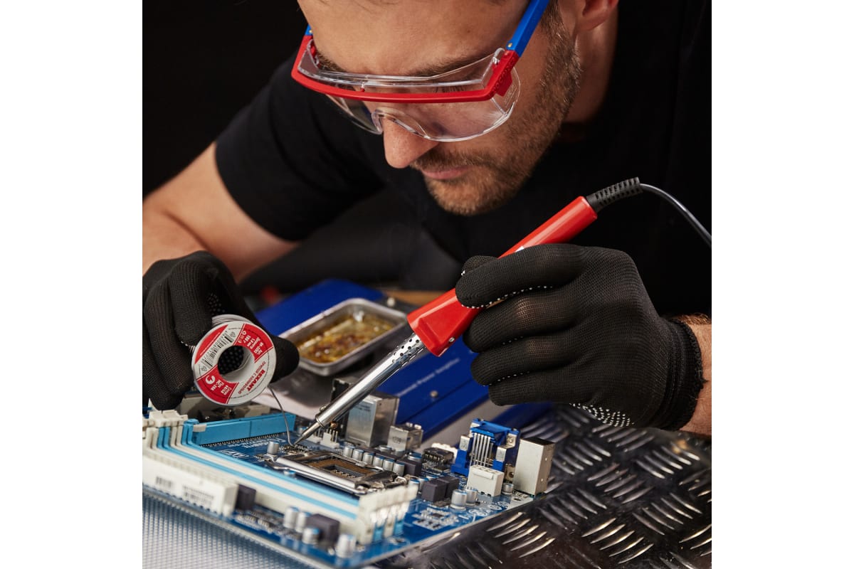 Паяльник с нихромовым нагревателем, долговечное жало 220В 40Вт PROconnect 12-0123-4 обладает повышенным рабочим ресурсом, состоит из прочной пластиковой рукоятки с термостойкими свойствами, рабочего жала с защитным хромовым и оловянным покрытием, медного сердечника со слоем электролитически осажденного железа, а также нихромового нагревателя, который повышает скорость разогрева. Сетевой шнур имеет качественную изоляцию, длина провода равна 1,35 м.