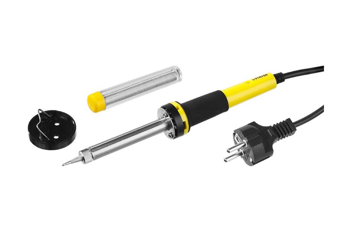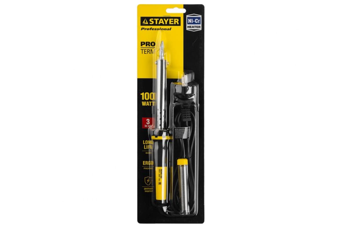Паяльник STAYER с двухкомпонентной рукояткой и долговечным жалом, конус 55300-30 оснащен медным жалом со специальным покрытием LongLife.