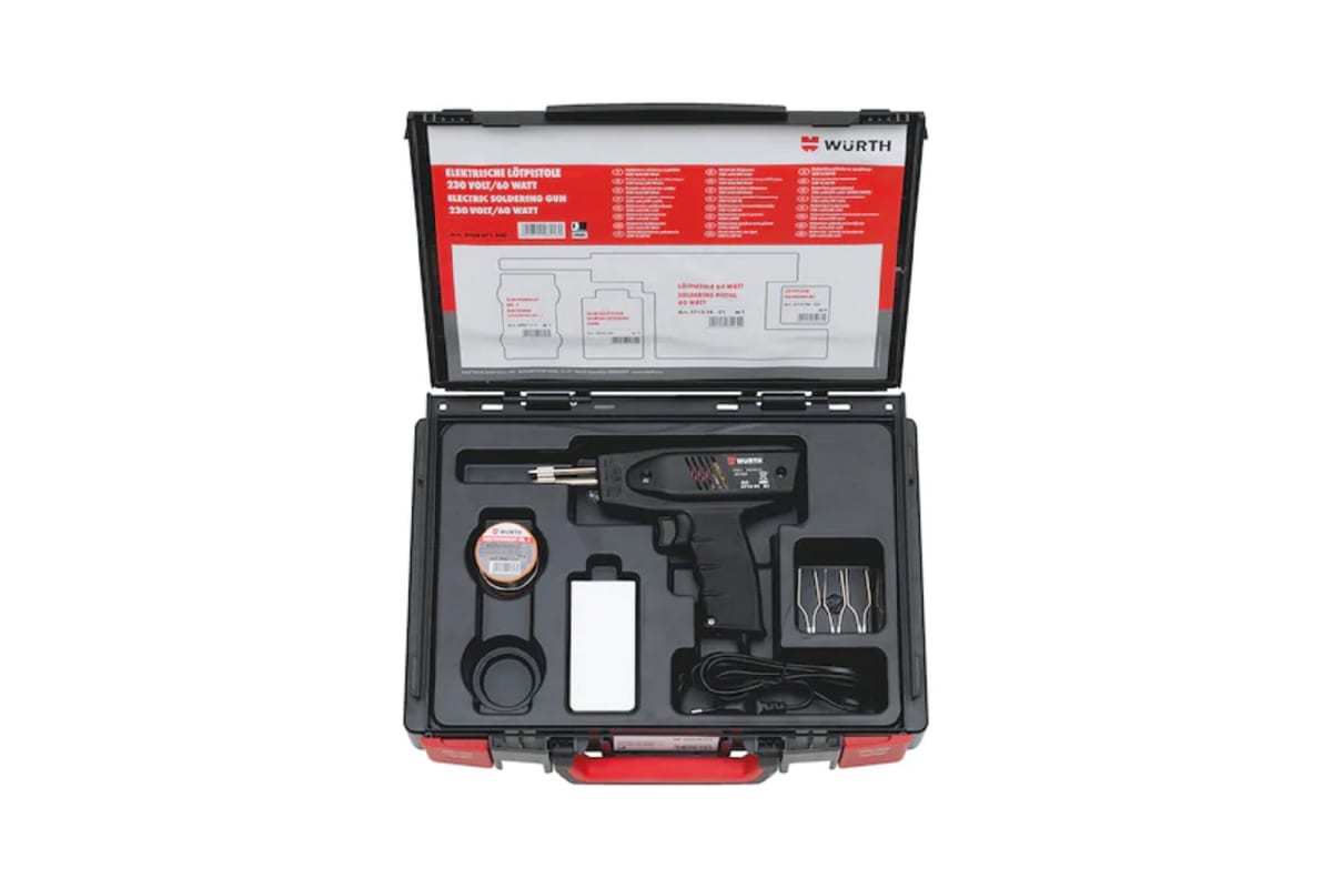 Паяльный пистолет Wurth UN SORT SYSKO 5964071500961 1 готов к немедленному использованию благодаря быстрому нагреву. Пластиковый корпус оборудован встроенной подсветкой места пайки.