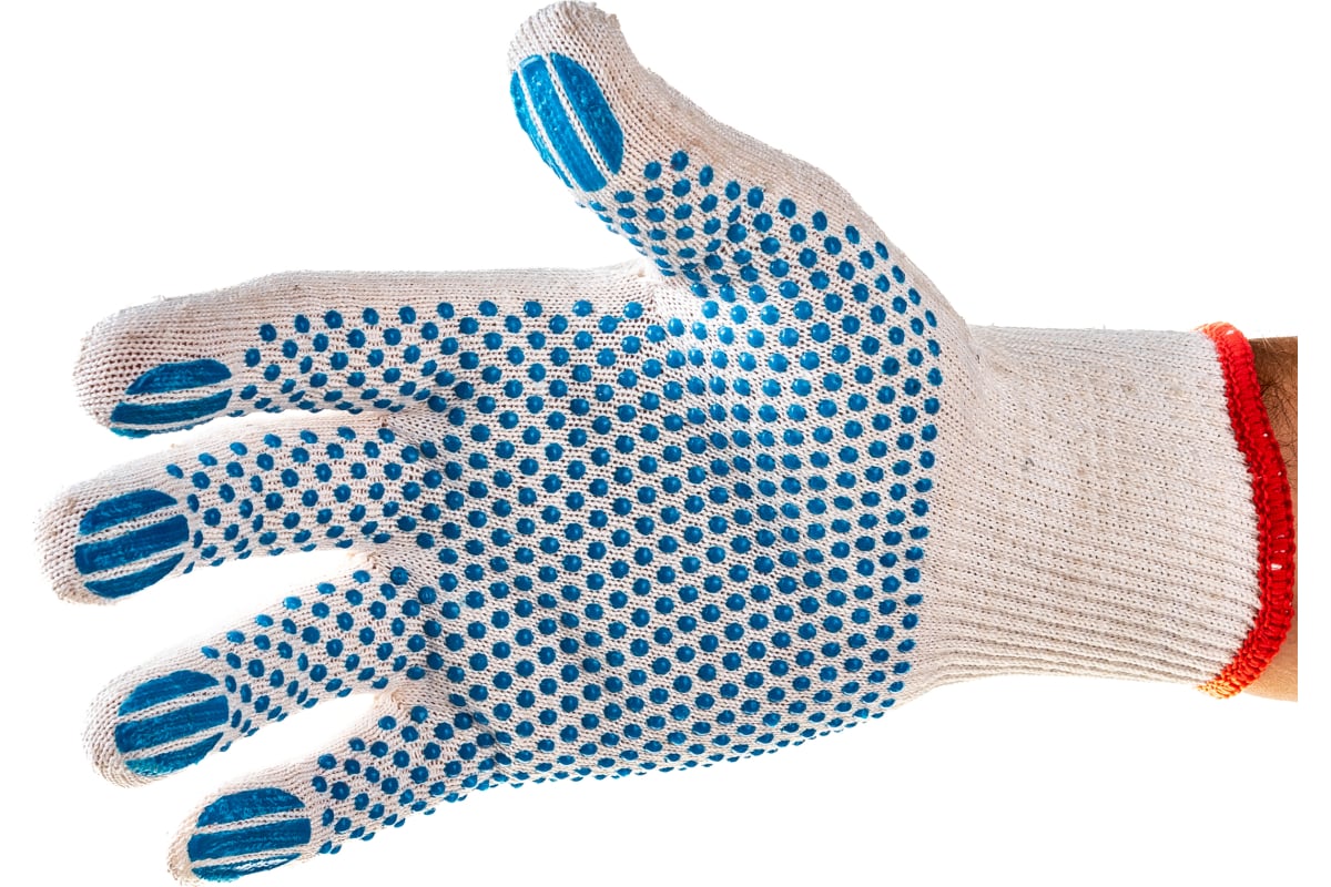 Трикотажные перчатки с защитой от скольжения "ЭКСПЕРТ" ЗУБР 11451-S предохраняют руки от загрязнений и механических повреждений во время хозяйственно-бытовых, садовых, строительных и погрузочно-разгрузочных работ. Предотвращают возникновение мозолей или натирания при продолжительном труде. Изготовлены из натурального хлопка и полиэстра, благодаря чему происходит естественный воздухообмен, и руки "чувствуют себя" комфортно. Элементы из ПВХ на внутренней стороне ладоней обеспечивают лучшее сцепление с охватываемыми предметами и исключают их выскальзывание, поэтому перчатки особенно необходимы для работ, где требуется обеспечить высокую чувствительность пальцев рук. Перчатки имеют эластичные манжеты для дополнительной защиты запястий и удобства работы. Высокая плотность вязки по 12 классу гарантирует их прочность и стойкость к истиранию.