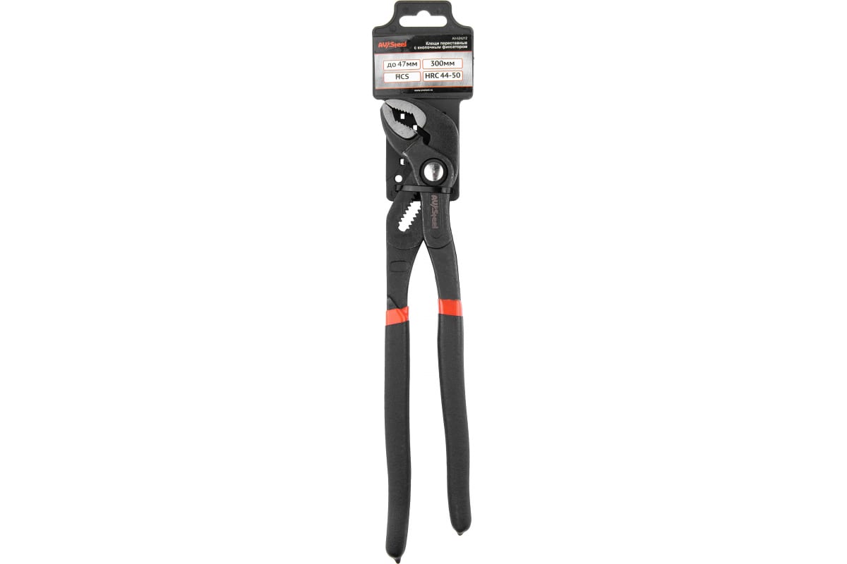 Переставные клещи AV Steel с кнопочным фиксатором, 300мм AV-624212 изготовлены из прочной хромованадиевой стали. На рукоятках расположены нескользящие чехлы. Механизм с кнопочной фиксацией позволяет четко выставлять необходимый размер по крепежу.