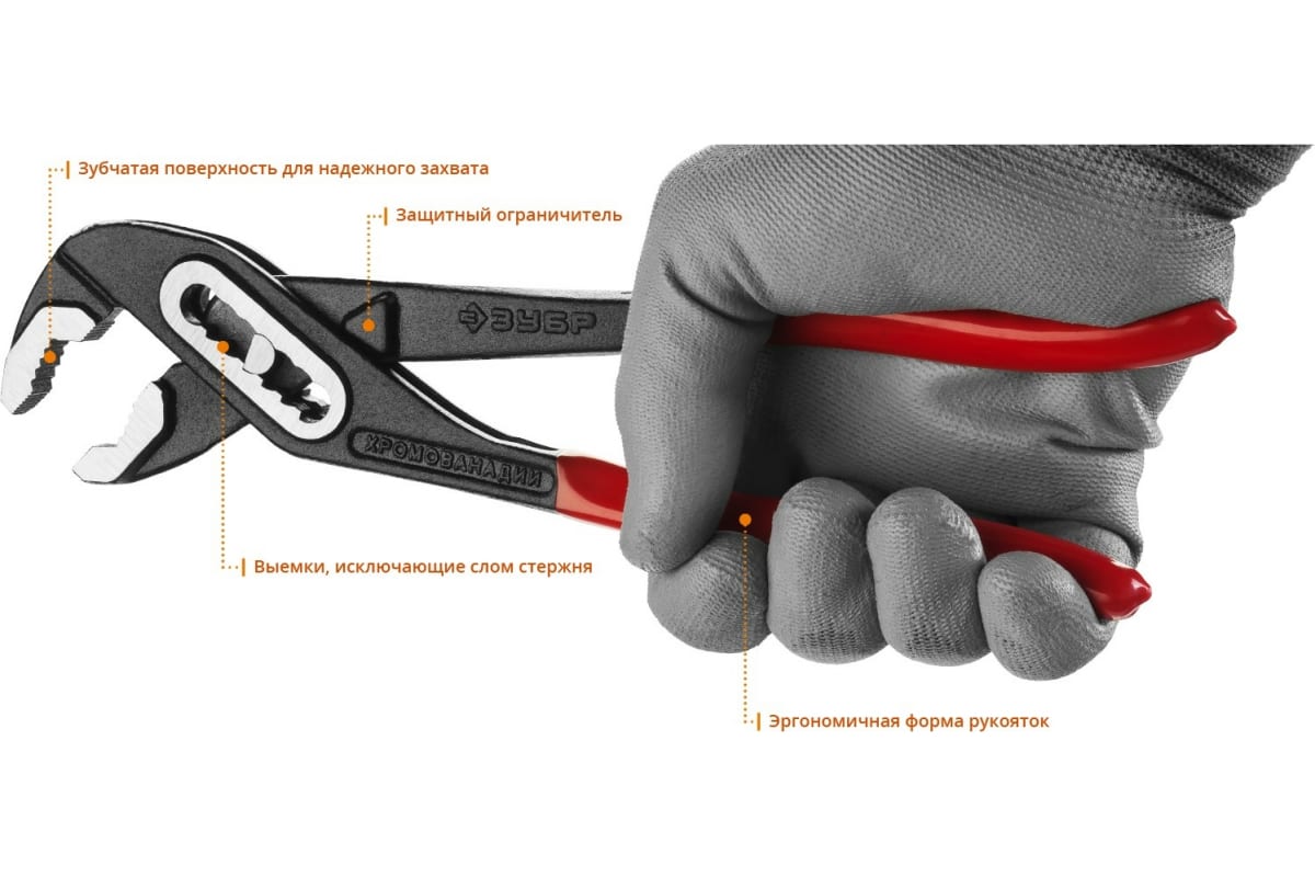 Преимущества переставных клещей ЗУБР 2242-40- Легированная хромованадиевая сталь.