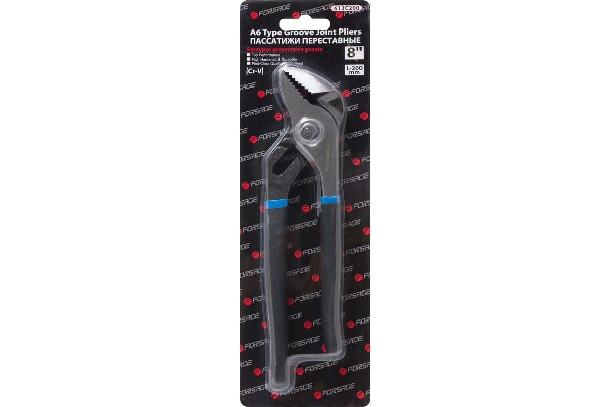 Переставные пассатижи Forsage Cr-V 8", 200 мм, в блистере 25978 F-613C200 представляют собой шарнирно-губцевый инструмент, который служит для различных монтажных, ремонтных и сантехнических работ. Губки выполнены из прочной хромованадиевой стали.