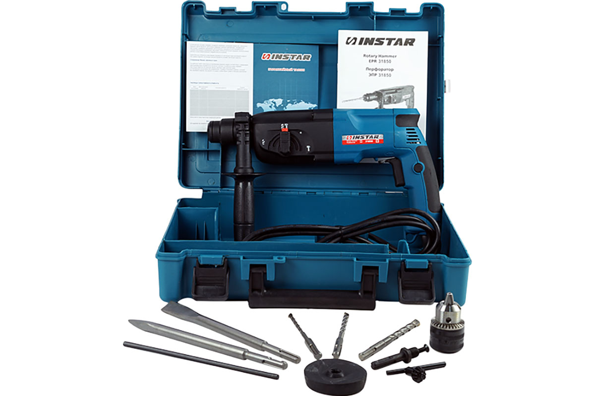 Перфоратор Instar ЭПР 31850 предназначен для создания технологических отверстий в кирпичной кладке, цементных и бетонных перекрытиях, а также изготовления штроб для кабель-канала.
