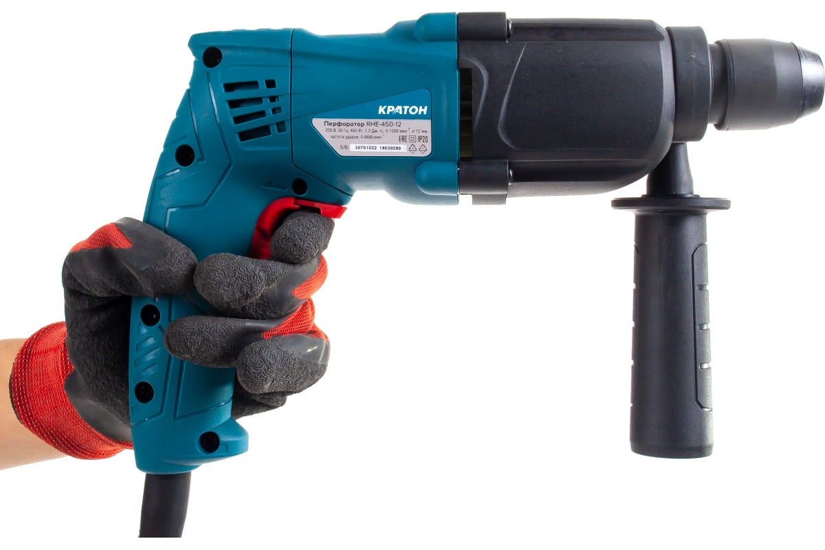 Преимущества Кратон RHE-450-12 3 07 01 022- Дополнительную рукоятку можно выставить в любое удобное оператору положение для надежного хвата;