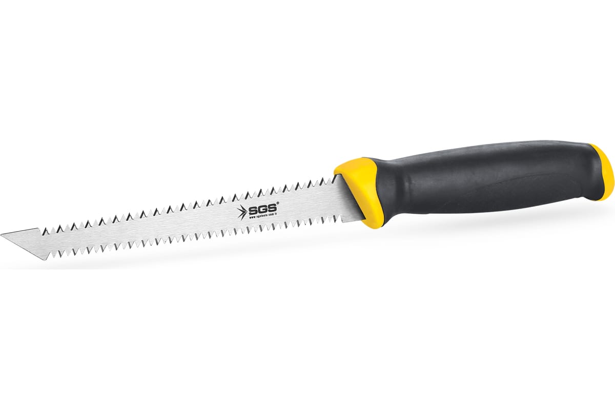 Пила для дерева, пластика, гипсокартона SGS 1774 1774SGS используется для пиления различных материалов. Качественное лезвие выполнено из термически обработанной углеродистой стали, благодаря чему обеспечивает четкий и чистый распил. Специальная заточка зубьев гарантирует высокую эффективность работ. Эргономичная рукоять обеспечивает надежный хват и комфортное использование.