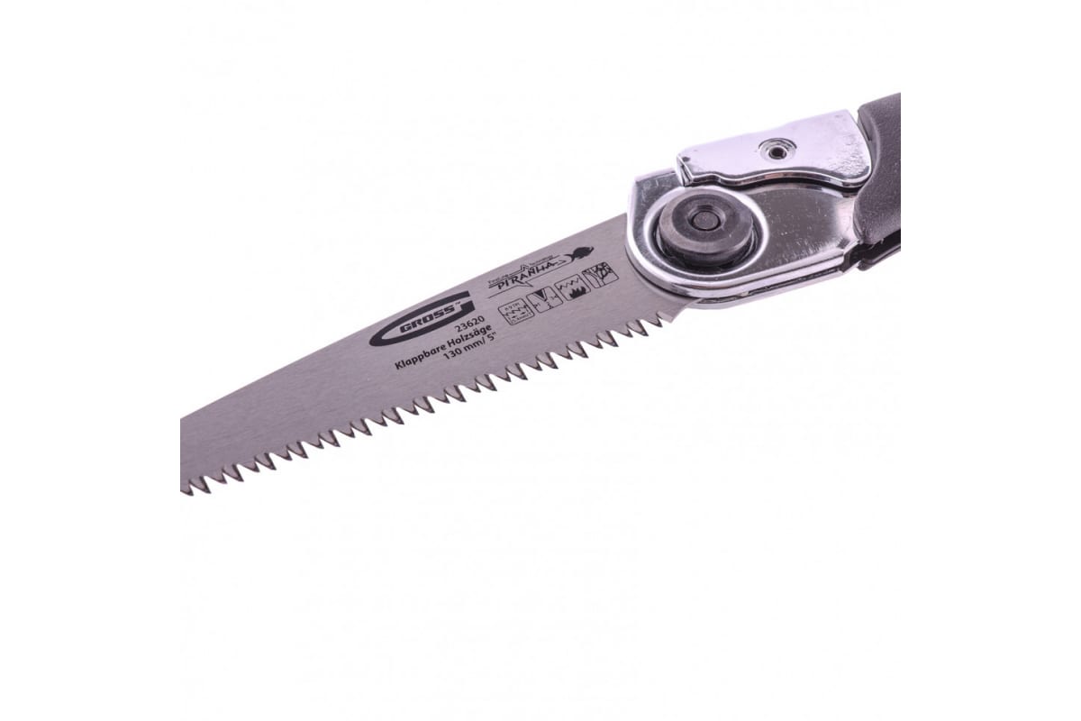 Складная пила по дереву Gross PIRANHA 23620 с полотном длиной 130 мм, калеными зубьями с 3D-заточкой и шагом 8-9 TPI, с обрезиненной рукояткой, в кобуре, предназначена для кемпинга и работы в саду. Подходит для продольного и поперечного пиления древесины. Зубья с трехгранной заточкой и шагом 8-9 TPI обеспечивают быструю распиловку. Пила легко складывается, поэтому ее можно брать с собой в поездку, поход или на пикник, не опасаясь пораниться в процессе транспортировки. В комплект входит чехол-кобура, которую можно повесить на ремень.