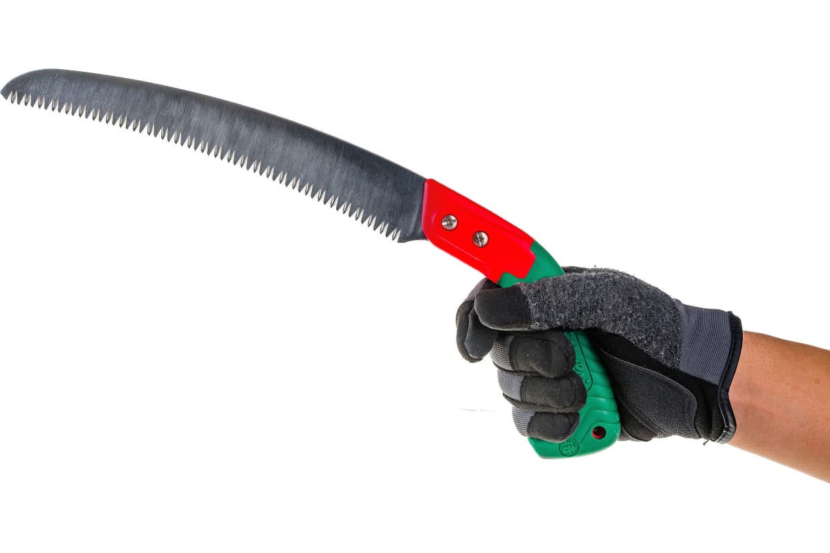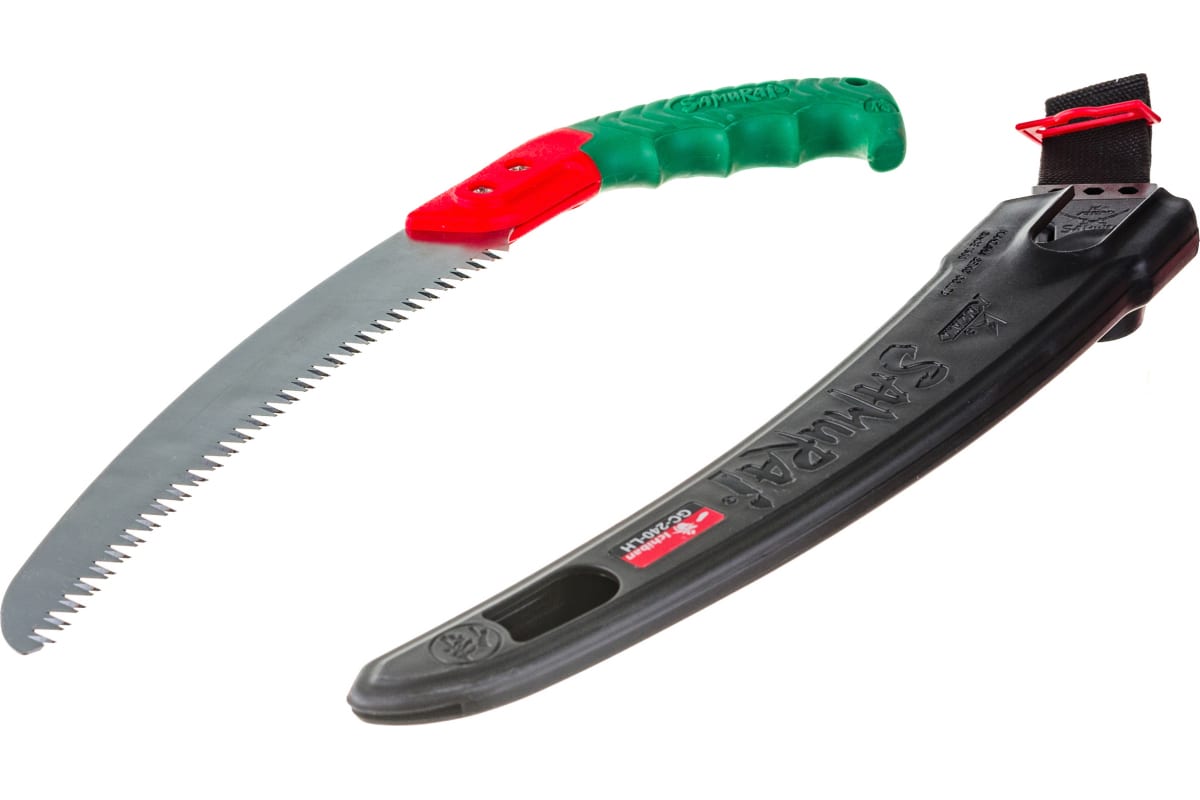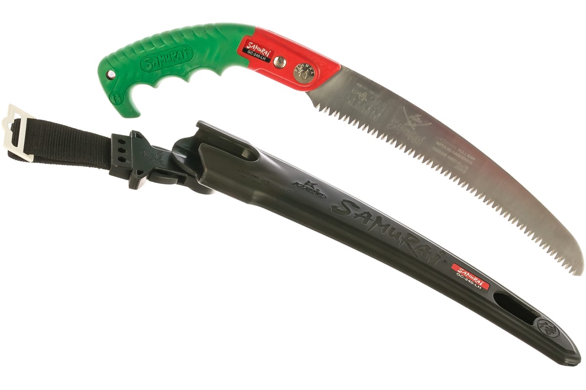 Пила с изогнутым полотном в чехле, с поясным креплением SAMURAI GC-240-LH — надежный ручной инструмент для ухода за садовыми деревьями, кустарниками. Подходит для удаления крупных веток, распиливания сухой древесины и небольших деревьев, обрезки ветвей и бережного удаления мелких веток. Зубья особым образом заточены в трех плоскостях и закалены, что позволяет осуществлять качественный рез на себя, ускорить процесс резки и сэкономить усилия пользователя. Инструмент отлично подходит для работы выше уровня плеча. Пила поставляется в комплекте с защитным кожухом, оснащенным поясным креплением, для удобного и безопасного ношения, хранения, транспортировки.
