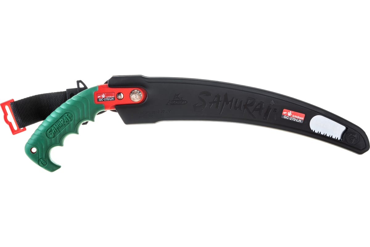 Пила с изогнутым полотном в чехле, с поясным креплением SAMURAI GC-270-LH — надежный инструмент для работ с деревьями, кустарниками, древесиной. Подходит для аккуратного удаления мелких ветвей, устранения крупных и средних ветвей, распиливания небольших деревьев и сухой древесины. Зубцы идеально заточены в трех плоскостях, прошли закалку высокочастнотными токами. Отличаются остротой, которая остается на самом высоком уровне даже после длительной эксплуатации инструмента. Пила способна производить качественный обратный рез, очень удобна для работ выше уровня плеча. Инструментом легко и комфортно пользоваться, не прикладывая особых усилий. В комплект входит защитный чехол для безопасного ношения и транспортировки.