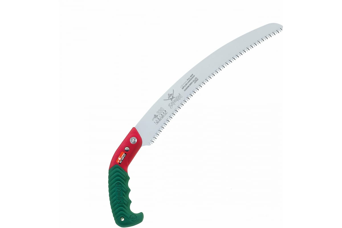 Пила с изогнутым полотном в чехле, с поясным креплением SAMURAI GC-330-LH пригодится для садовых работ с древесиной, кустарниками, деревьями. Инструмент подходит для распиливания сухой древесины и деревьев небольшого размера, аккуратного удаления мелких веток, обрезки ветвей среднего и крупного размера. Конструкция оснащена стальным зауженным утонченным полотном с хромированными острейшими зубьями, закаленными высокочастотными токами и имеющими три плоскости заточки. Пила отлично справляется с обратным резом, удобна при использовании выше уровня плеча. Изделие обладает прочностью, износоустойчивостью, обеспечивает легкую и комфортную работу без приложения лишних усилий. Шаг зубьев 4 мм.