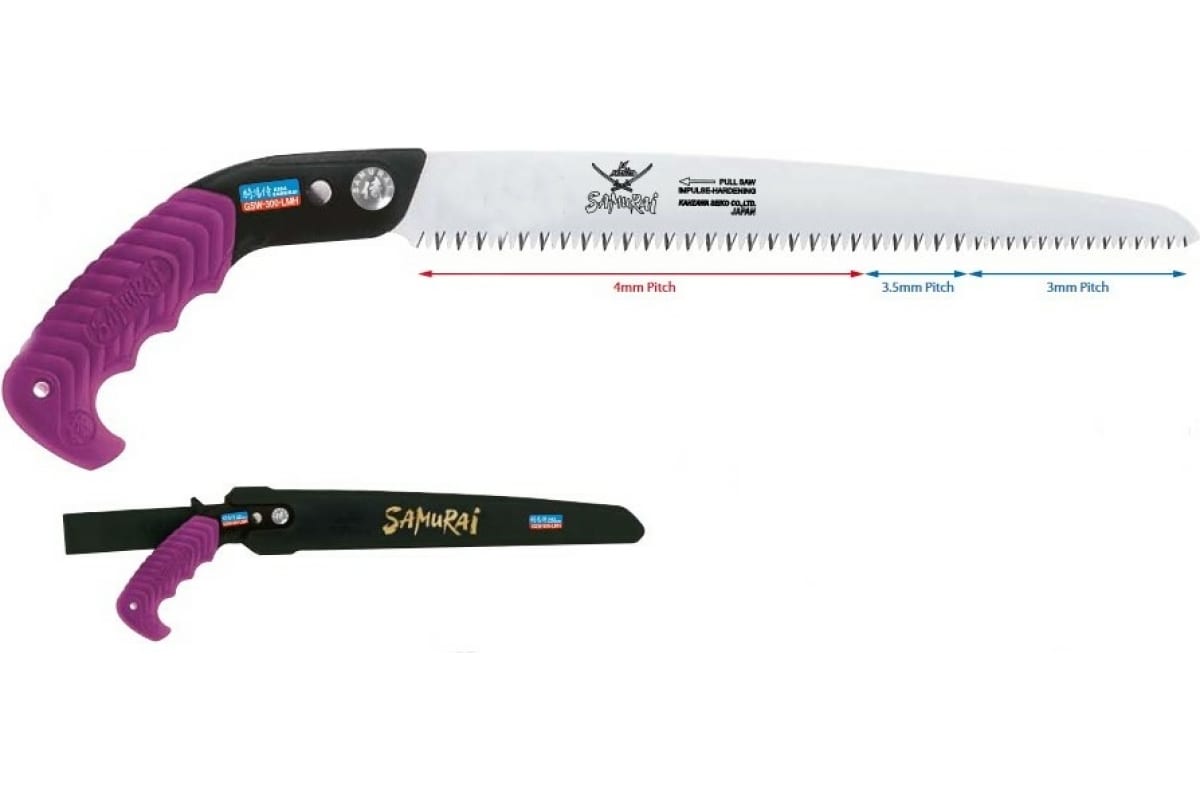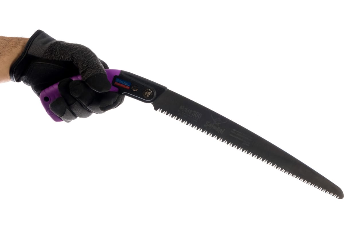 Пила с прямым полотном с переменным шагом в чехле, с поясным креплением SAMURAI GSW-300-LMH — надежный помощник для работ с деревьями и кустарниками. Подходит для обрезки крупных и мелких ветвей, распила сухой древесины и небольших деревьев. Инструмент обладает отличными режущими свойствами, обеспечивает ровный, легкий и быстрый рез. Максимальной остроты зубья подвержены трехсторонней заточке, закалены и хромированы. На трех участках полотна шаги зубьев различаются, поэтому одна пила способна заменить три пилы. Эргономичная рукоять не скользит, способствует комфортной работе. Чехол для хранения и транспортировки поставляется в комплекте.