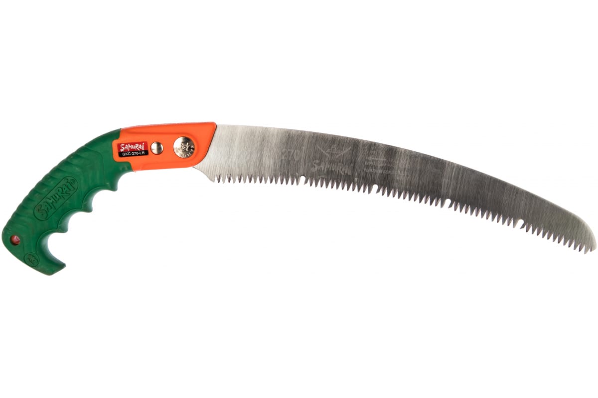 Пила самоочищающаяся изогнутое полотно в чехле, с поясным креплением SAMURAI GKC-270-LH применяется для распила небольших деревьев, кустарников, удаления с них маленьких и крупных ветвей. Инструмент изготовлен по специальной технологии, обеспечивающей легкость, эффективность, удобство работы. Наличие закаленных зубьев с трехсторонней заточкой позволяет работать без значительного приложения усилий. При резе древесины мягких пород опилки сами удаляются из зоны пиления, чему способствуют углубленные пазы между зубьями. Эргономичная рукоятка обеспечивает комфорт работы. Больше всего пила подходит для работы выше уровня плеча. Чехол поставляется в комплекте.