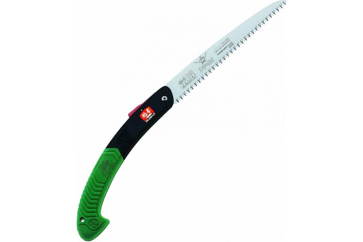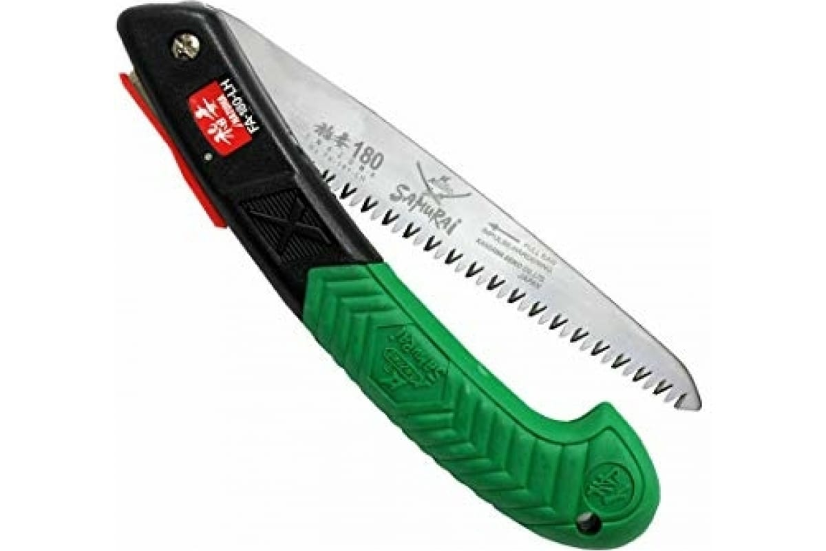 Пила складная с фиксатором прямое полотно SAMURAI FA-180-LH — надежный ручной инструмент для туристов и садоводов. Применяется для распиливания сухой древесины и обрезки с кустарников и небольших деревьев ветвей всех размеров. Тонкое полотно заужено и оснащено закаленными зубьями с заточкой в трех плоскостях. Пила имеет отличные режущие характеристики, выдерживает значительные нагрузки и имеет продолжительный рабочий ресурс. Более эффективна для работы выше уровня плеча. Складная конструкция обеспечивает компактное, безопасное хранение и транспортировку.