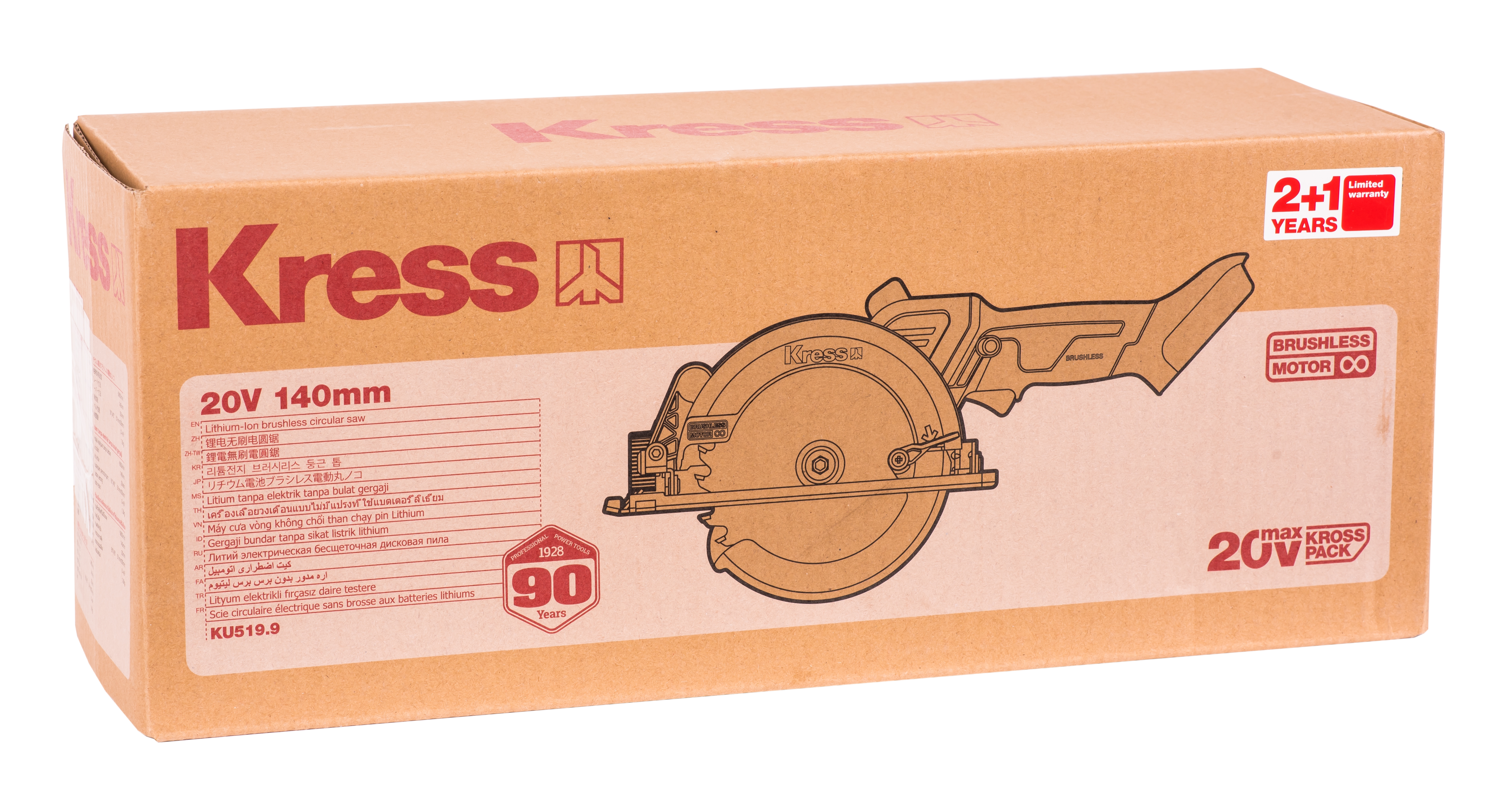 - Циркулярная пила KU519.9 оснащена современным бесщеточным двигателем, обеспечивающим скорость вращения пильного диска до 6900 оборотов в минуту. Благодаря отсутствую щеток, новый двигатель получил на 25% больше мощности и увеличил срок эксплуатации в 10 раз.