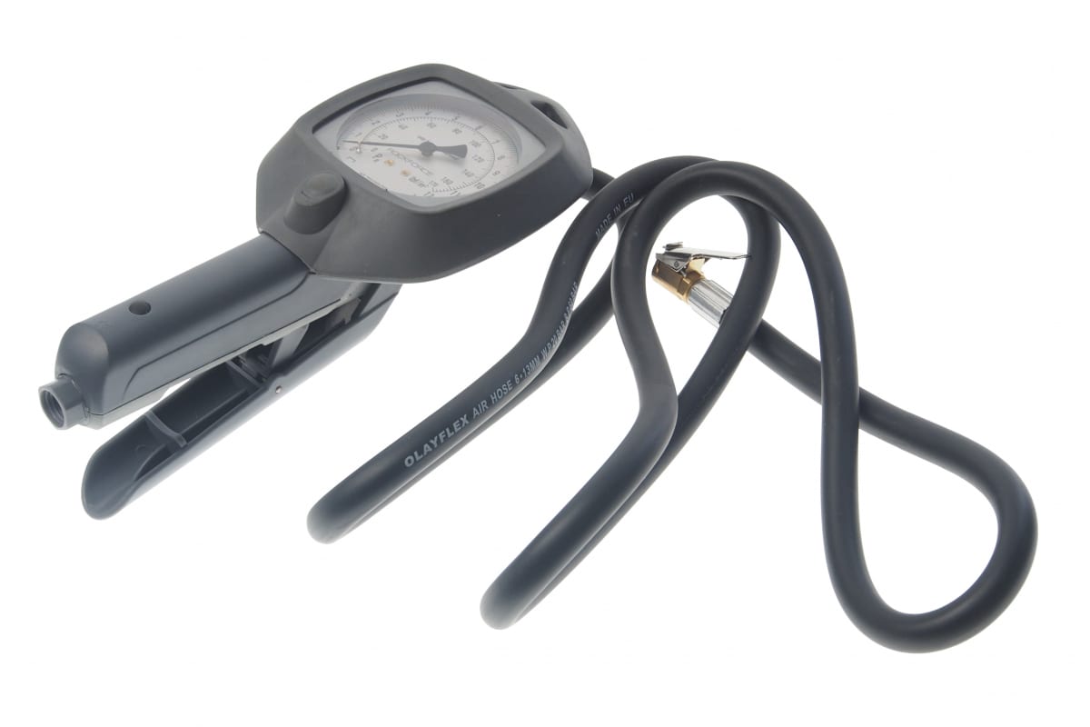 Благодаря манометру можно контролировать текущее давление в шинах.