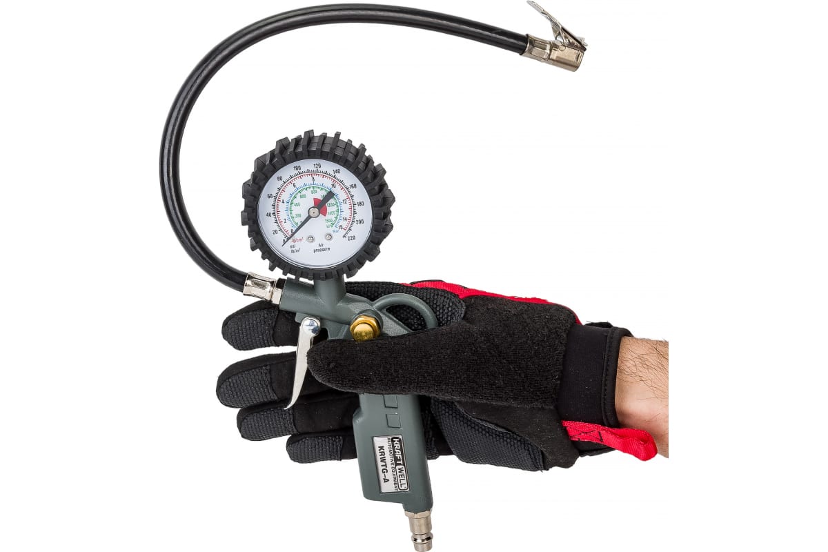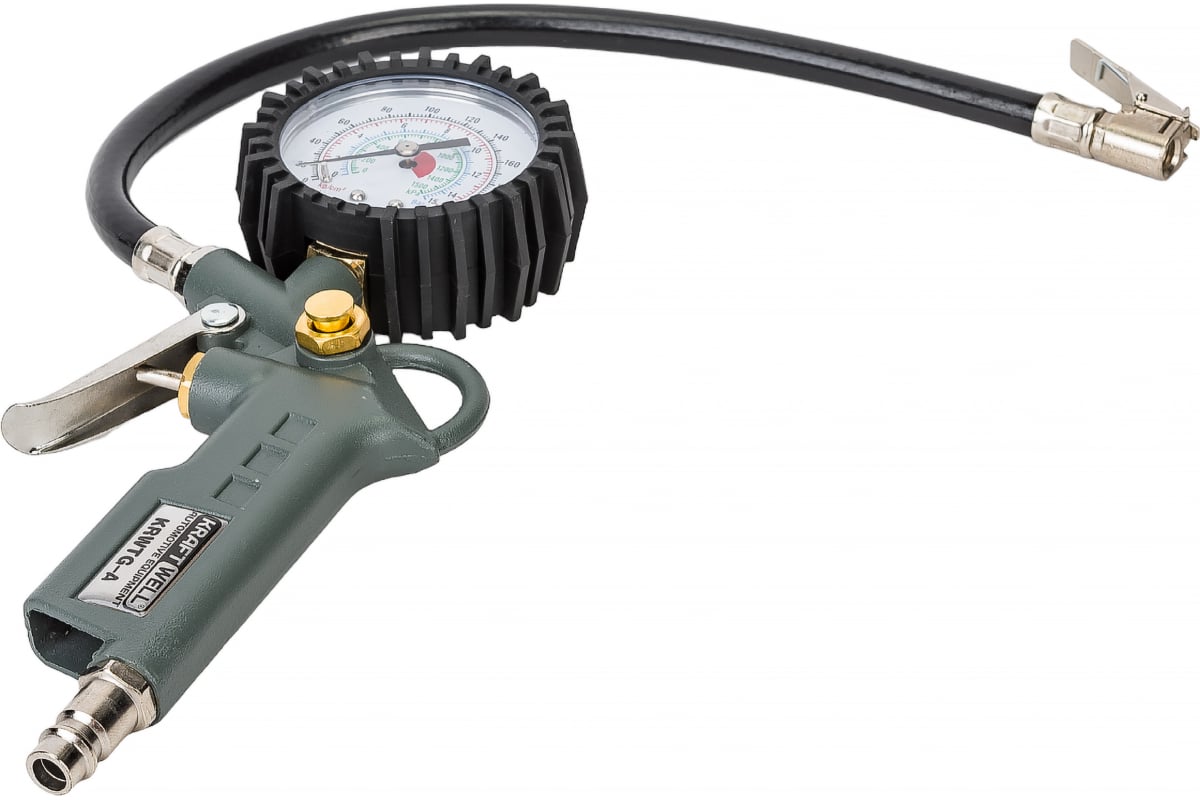 Пистолет для подкачки шин с аналоговым манометром KraftWell KRWTG-A предназначен для применения в шиномонтажных мастерских, станциях технического обслуживания автомобилей и мототехники, а также для автолюбителей.