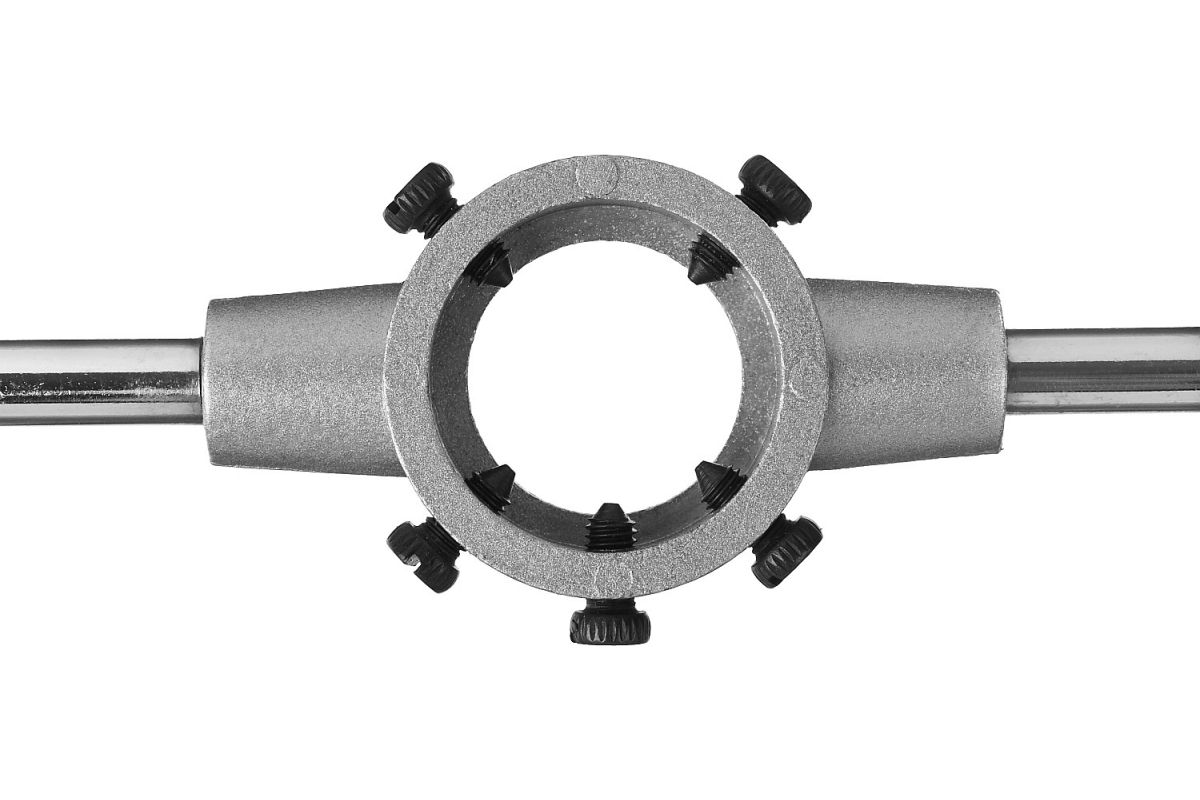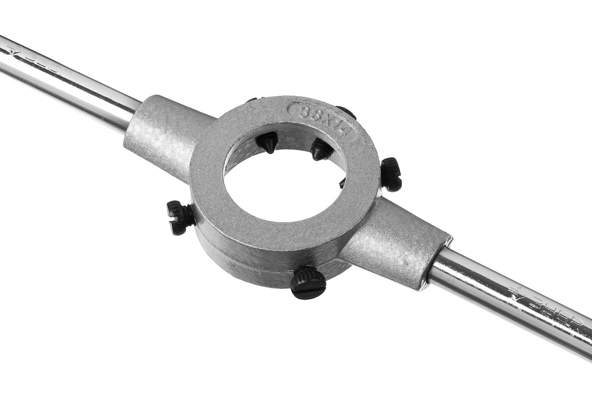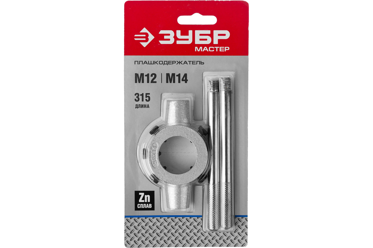 Плашкодержатель, 38х14мм для М12 - М14, Зубр Мастер L - 315мм 28142-38_z01 выполнен из цинкоалюминиевого сплава. Инструмент удобен в использовании за счет надежного удержания плашек и более качественного нарезания наружной резьбы.