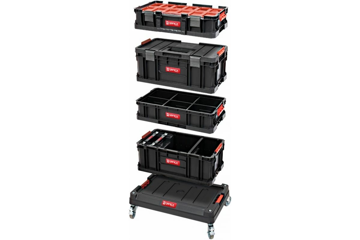 Платформа на колесах QBRICK SYSTEM TWO TRANSPORT PLATFORM 595x395x175мм 10501271 оснащена вращающимися колесами с тормозами и прочной конструкцией, допускающей максимальную нагрузку в 100 кг.
