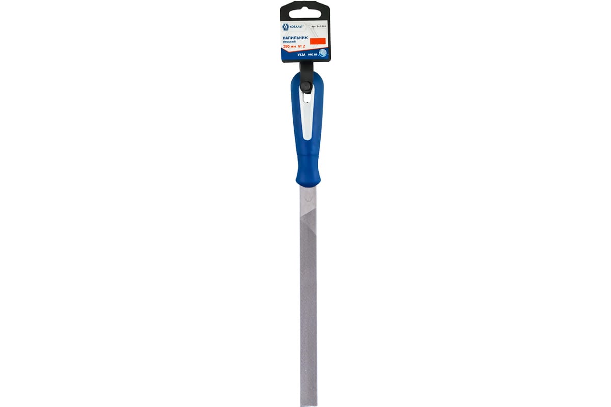 Плоский напильник (№ 2, 250мм, подвес) КОБАЛЬТ 247-392 используется для обработки деталей из различных металлов. Преимущество работы с инструментом заключается в наличии двойной насечки, а также удобной рукоятки, которая не скользит в ладони.