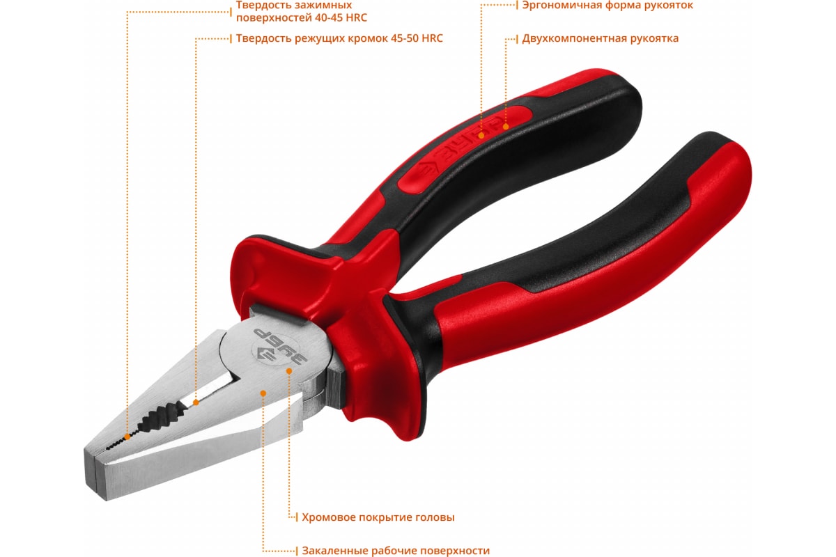 Преимущества плоскогубцев ЗУБР 22024-1-16_z01- Поверхность губок и режущие кромки дополнительно закалены токами высокой частоты для увеличения ресурса.