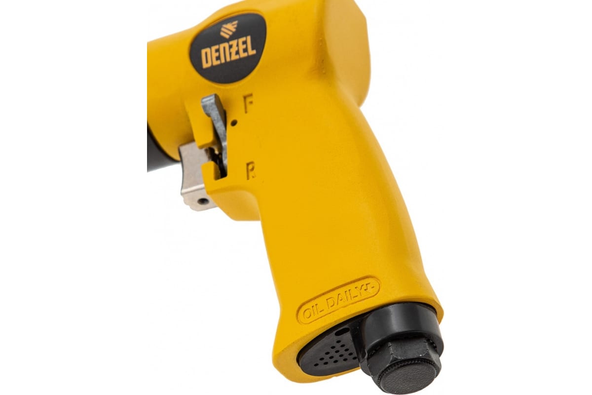 Во время работы не забывайте использовать специальное масло ISO 46, которое можно добавлять как напрямую в инструмент, так и с помощью блока подготовки воздуха Denzel 57469, включающего в себя лубрикатор для автоматической подачи масла.